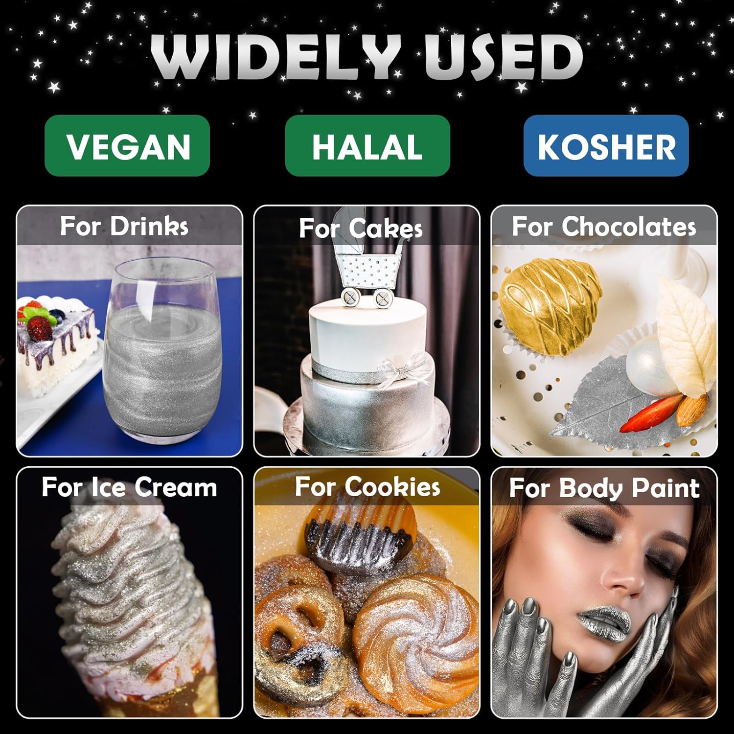 • ✔️【Vegan & Allergen-Free】Food-grade glitter uses only the highest quality vegan ingredients and does not contain common food allergens, including gluten, nuts or dairy products, so everyone can use and enjoy this product regardless of diet or food allergies. Unlike food contact glitter, these are 100% edible, so you don't need to worry about using them in your creations to make them sparkle for all.