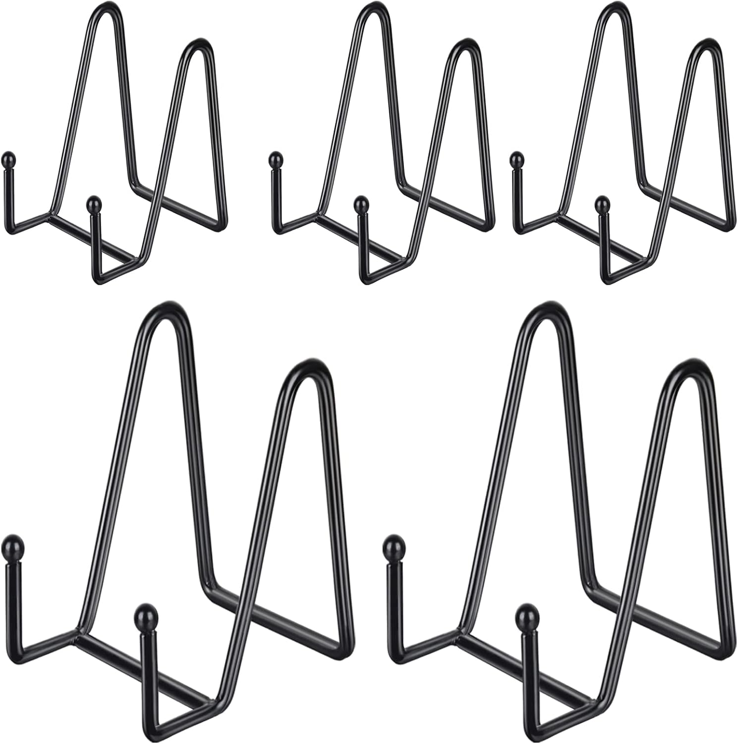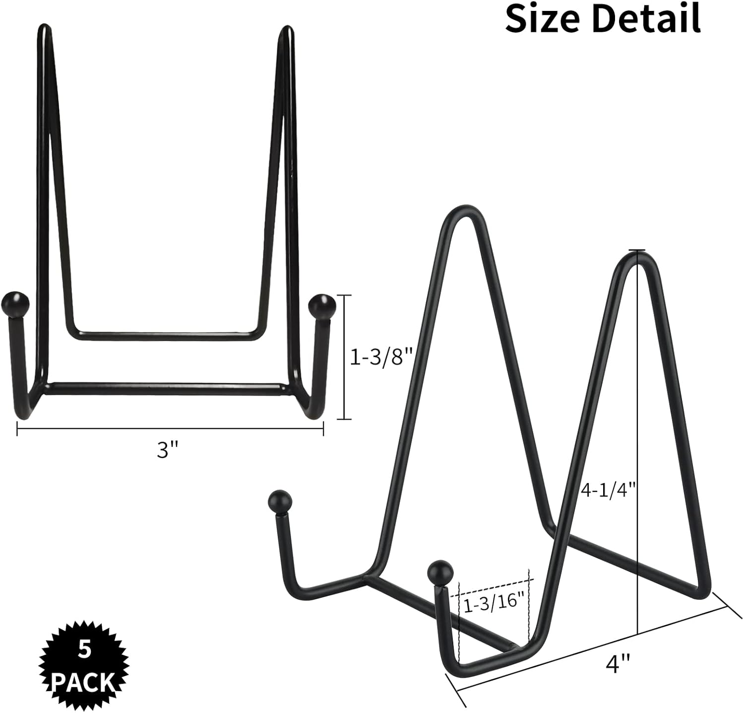 IBosins 5 Pack 4 Inch Plate Holder Display Stands, Metal Black Frame Stand for Picture, Book, Photo Easel, Creation, Collectibles