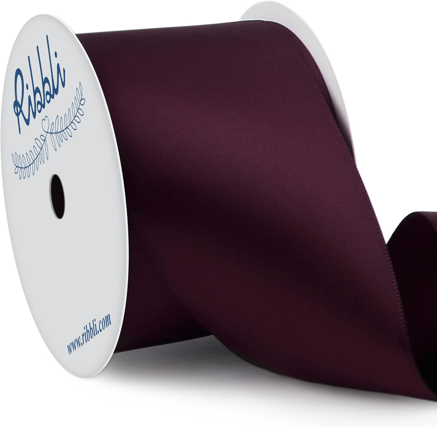 Ribbli Burgundy Double Faced Satin Ribbon, 2” x Continuous 10 Yards,Use for Bows Bouquet,Gift Wrapping,Floral Arrangement,Wedding Decoration