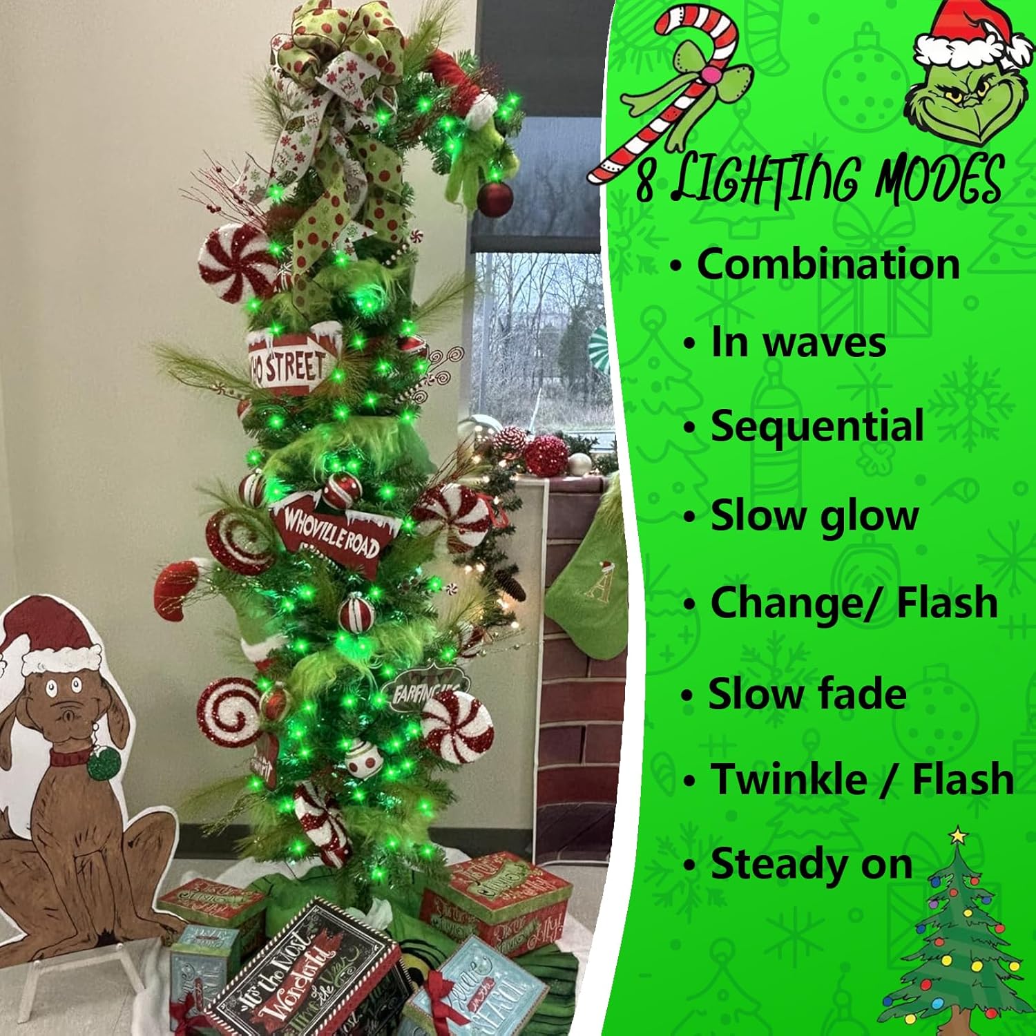 YEGUO 66ft 200 LED Green Halloween Lights Outdoor Waterproof, Green Wire Christmas String Lights Indoor, 8 Modes Twinkle Tree Lights Plug in with Timer Memory