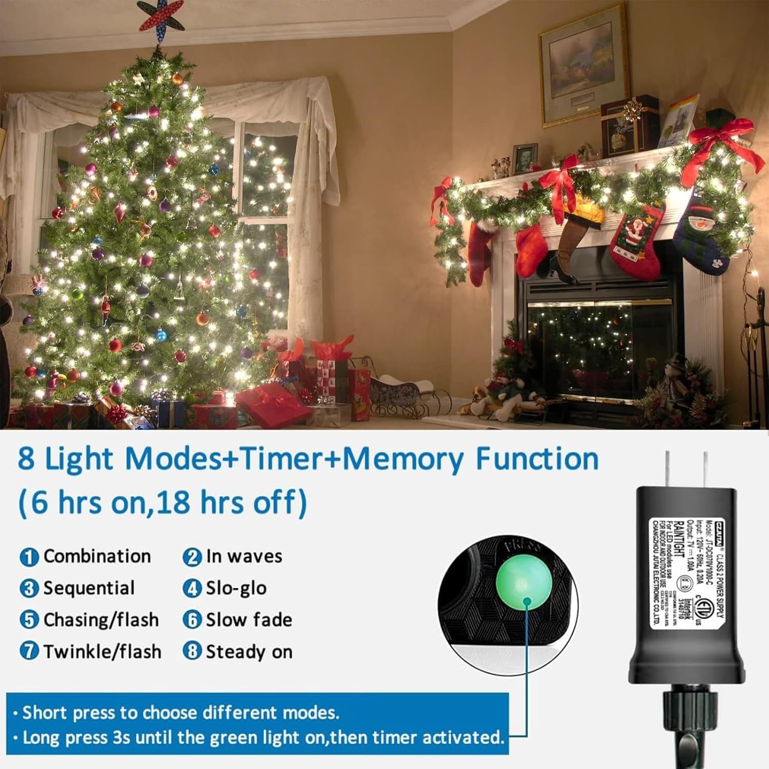 • UL588 Listed Plug with 8 Modes: UL588 certification 30V low voltage transformer to ensure your safe use. Still in a low temperature state after lighting up for hours. Directly plug in and unplug it for power on and off. Short press the button can choose 8 different modes.