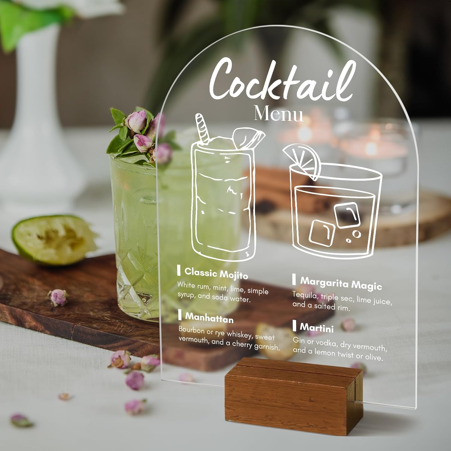 • Versatile Acrylic Signs: Elevate your wedding's chic factor with acrylic signs that can double as tabletop markers, welcome banners, card and gift indicators, bar menus, and food labels, or even as a canvas for your hand calligraphy to create personalized desk decor or heartfelt gifts for loved ones.