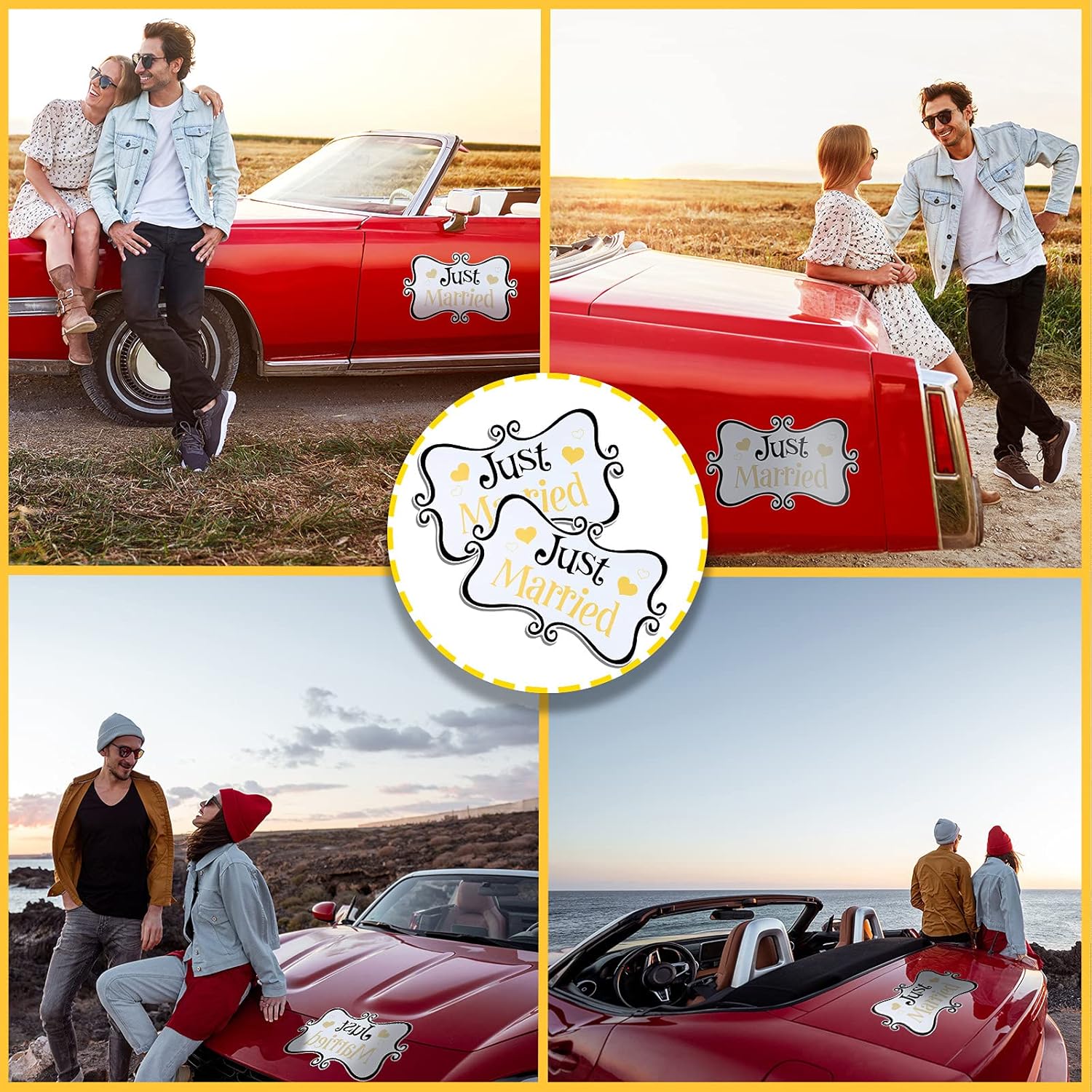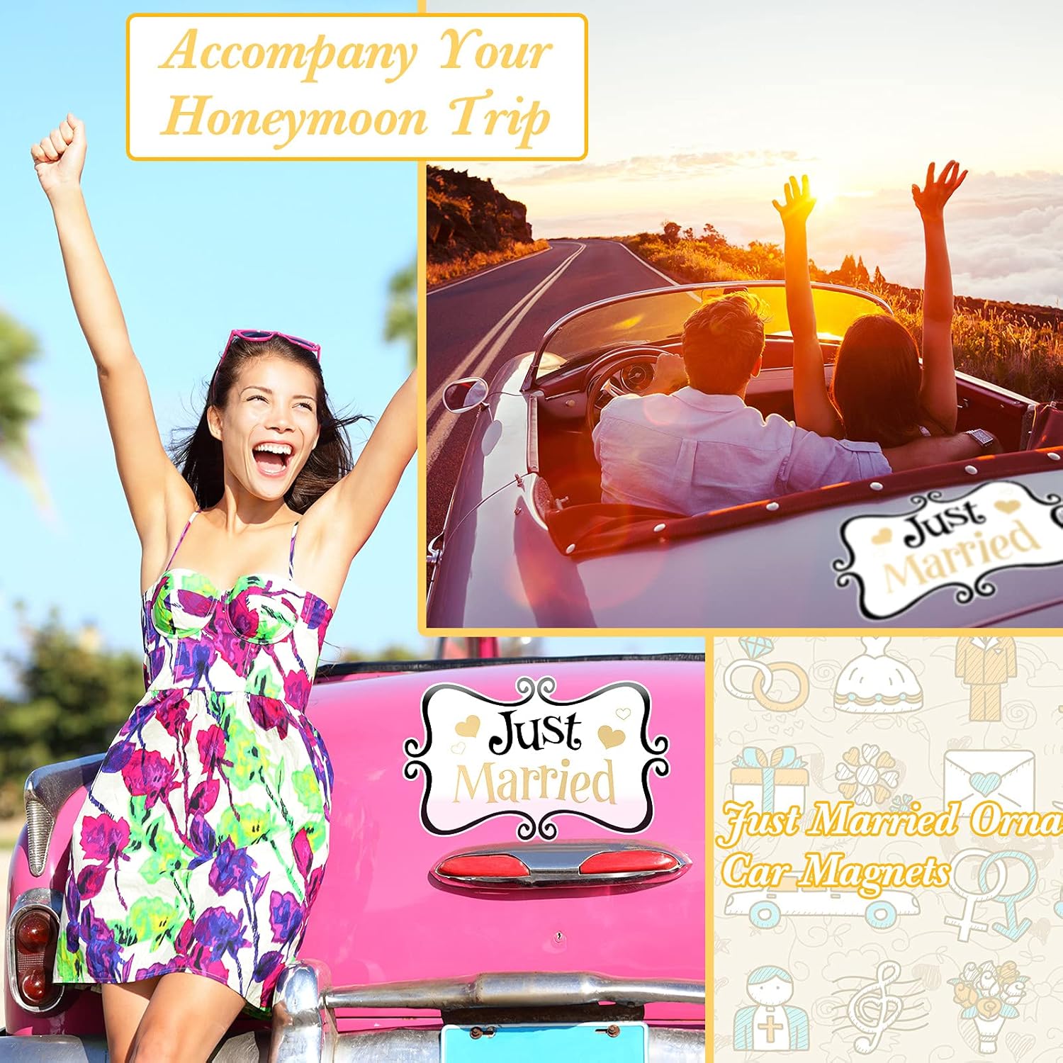 • Sturdy material: these wedding stickers decorations are made of magnet material, which is waterproof with nice suction for you to use for a long time, and they will not fall off from the car even during fast driving, bringing you a nice use experience