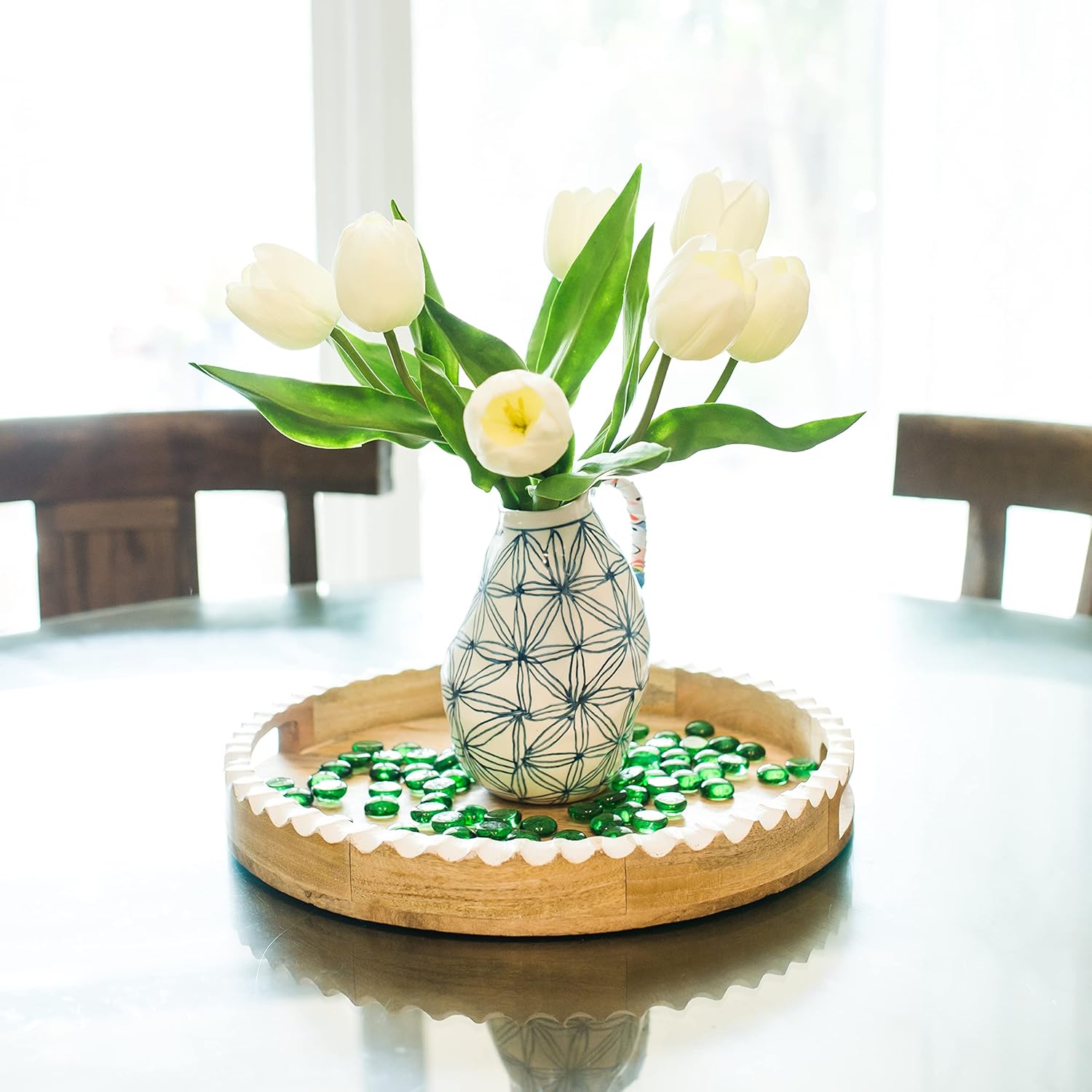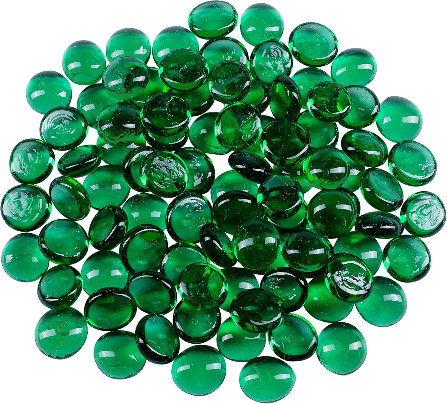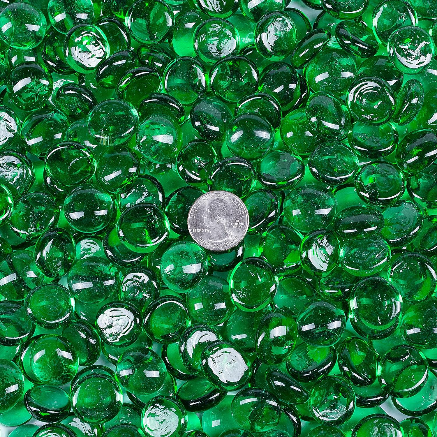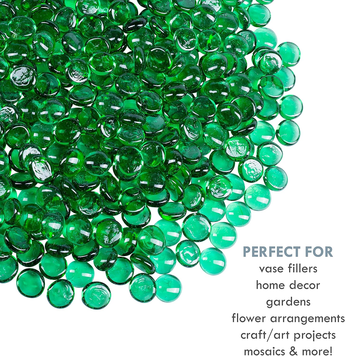 Galashield Flat Glass Marbles for Vases Green Glass Gems Beads Pebbles Vase Filler (1 LB, Approx. 105 PCS)