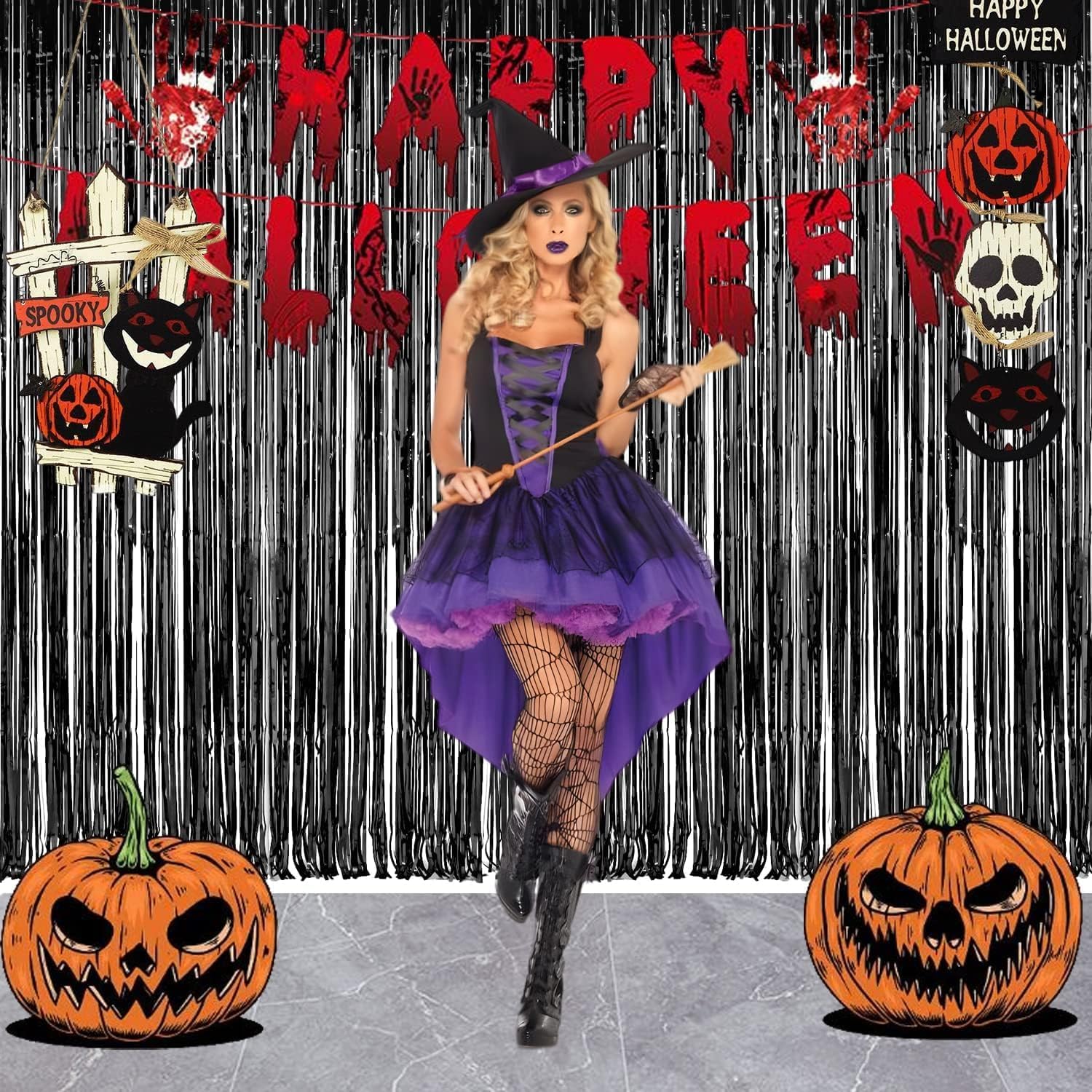 Foil Fringe Curtain Halloweens Party Decorations - Pure Black Tinsel Photo Backdrop Party Steamers Curtains for Birthdays Music Christmas Stranger Theme Parties