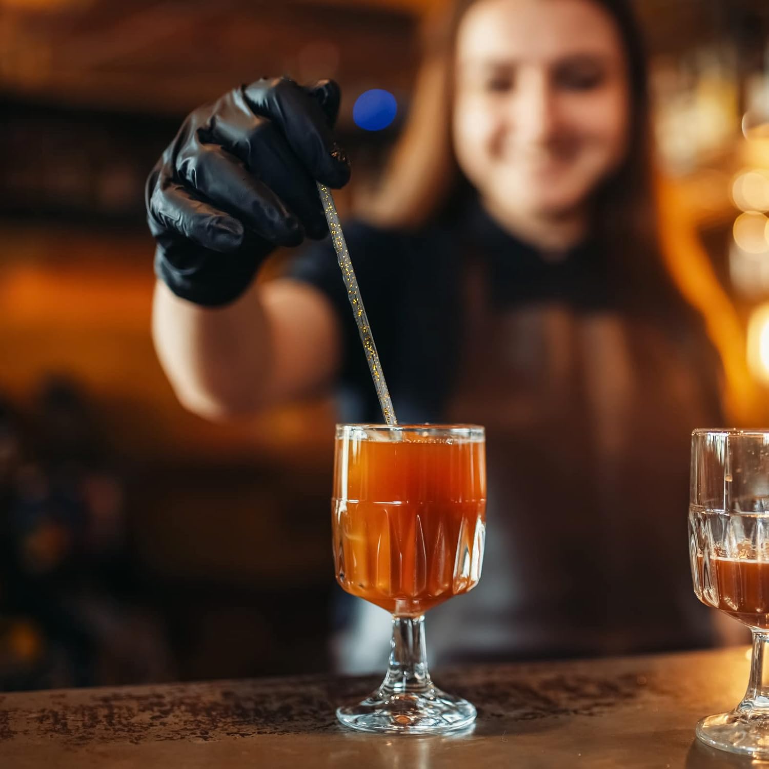 • Unique Design: Clear plastic pick stirrers with ball on top, and glitter golden pieces, popular and contemporary design to keep fruit and vegetable garnishes in place