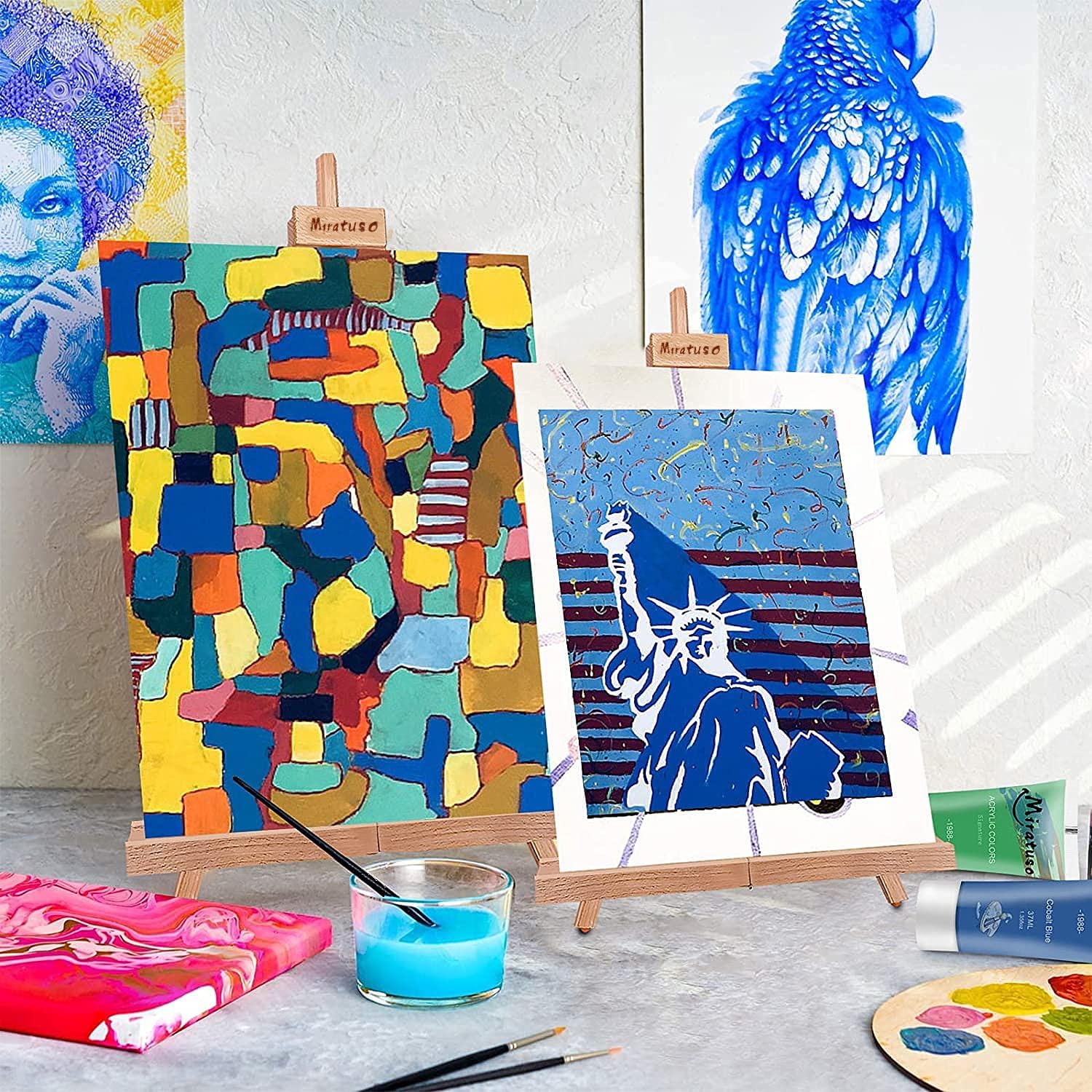 • ✨【VERSATILE APPLICATION】MIRATUSO multifunctional tabletop easel is not only perfect for painting but also doubles as a stylish display stand. Whether you're holding a canvas, showcasing artwork, framing photos, or presenting store posters and books, it adapts easily to your creative or retail needs. Perfect for artists, students, shop owners, and decorators.
