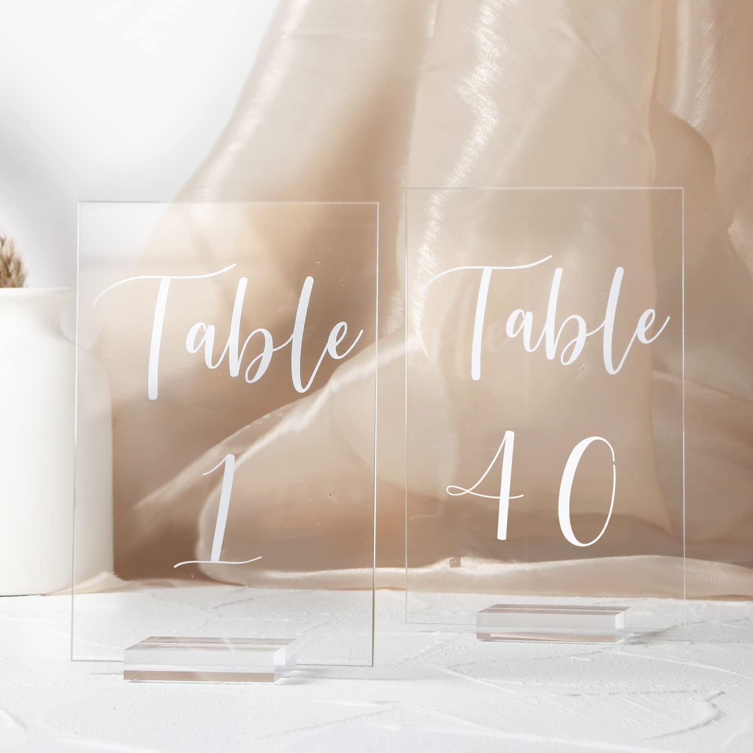 • Modern & Chic Table Numbers: Number 1-40. Glass look acrylic is in trend! Our table numbers are designed with modern script-style calligraphy which stands out beautifully against the clear acrylic! They are great for all styles of weddings and table setting themes - modern, boho, glamorous or minimalist - look absolutely stunning in photos!