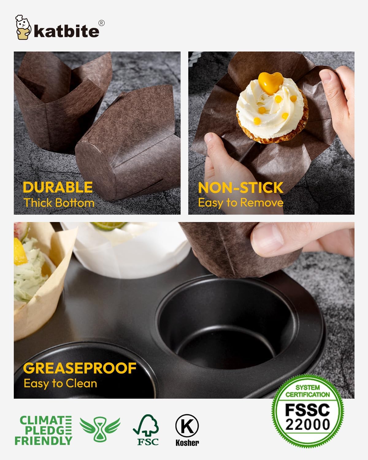 Katbite Tulip Cupcake Liners 200PCS, Muffin Baking Cupcake Liners Holders, Baking Cups, Cupcake Wrapper for Party, Wedding, Birthday, (Coffee)