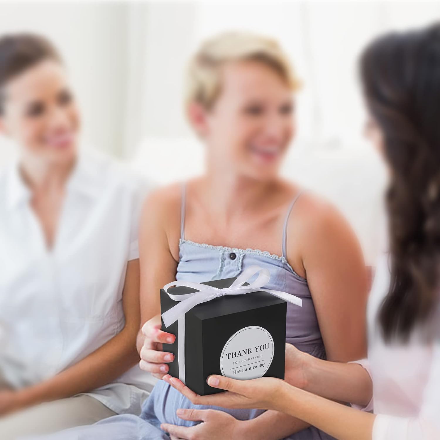 • What You'll Get: 100pcs Black favor boxes,100pcs white ribbons and 100pcs Thank you stickers. you can tie a bow knot on top, which will be more elegant and romantic for party.
