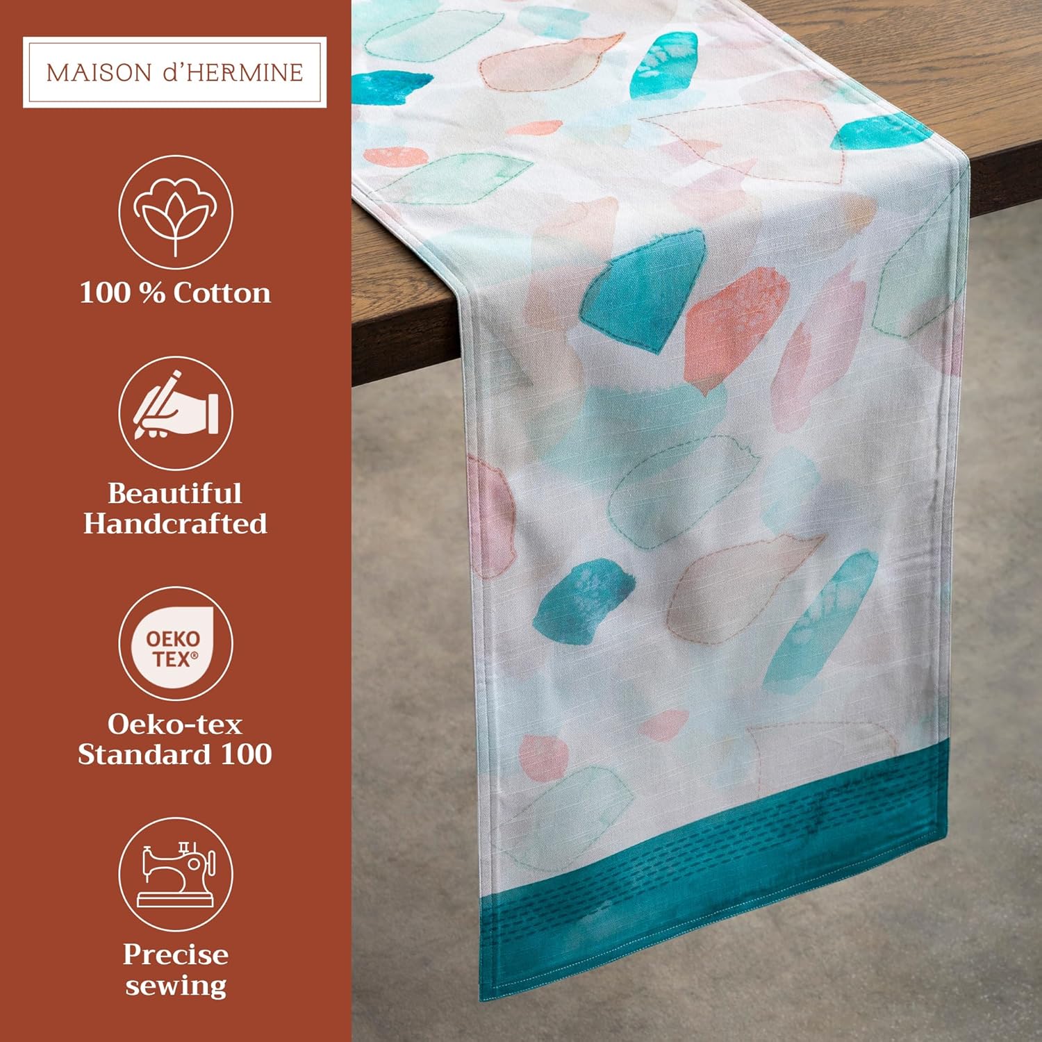 • Unique design: Each table runners features watercolor artwork inspired by traditional European motifs, with intricate details and vibrant hues. Designed in Europe and made in India, it captures the warmth and elegance of artisan-crafted décor.