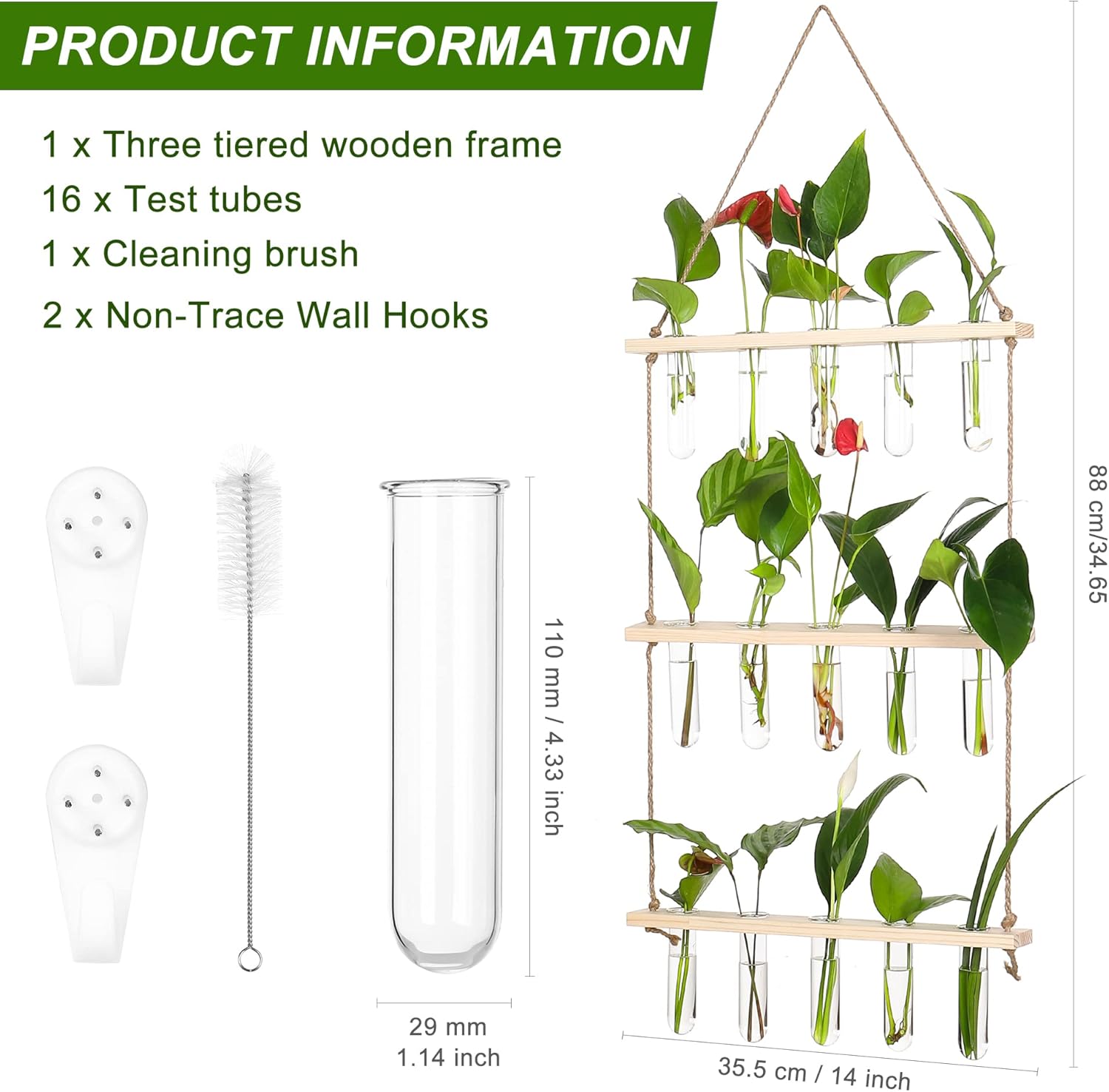 YIBOT Propagation Stations,3 Tiered of Propagation Tubes with Wooden Stand,Mini Glass Test Tubes Vase,Plant Terrarium for Hydroponic Home Garden Office Decor, Gardening Gift for Women Plant Lover
