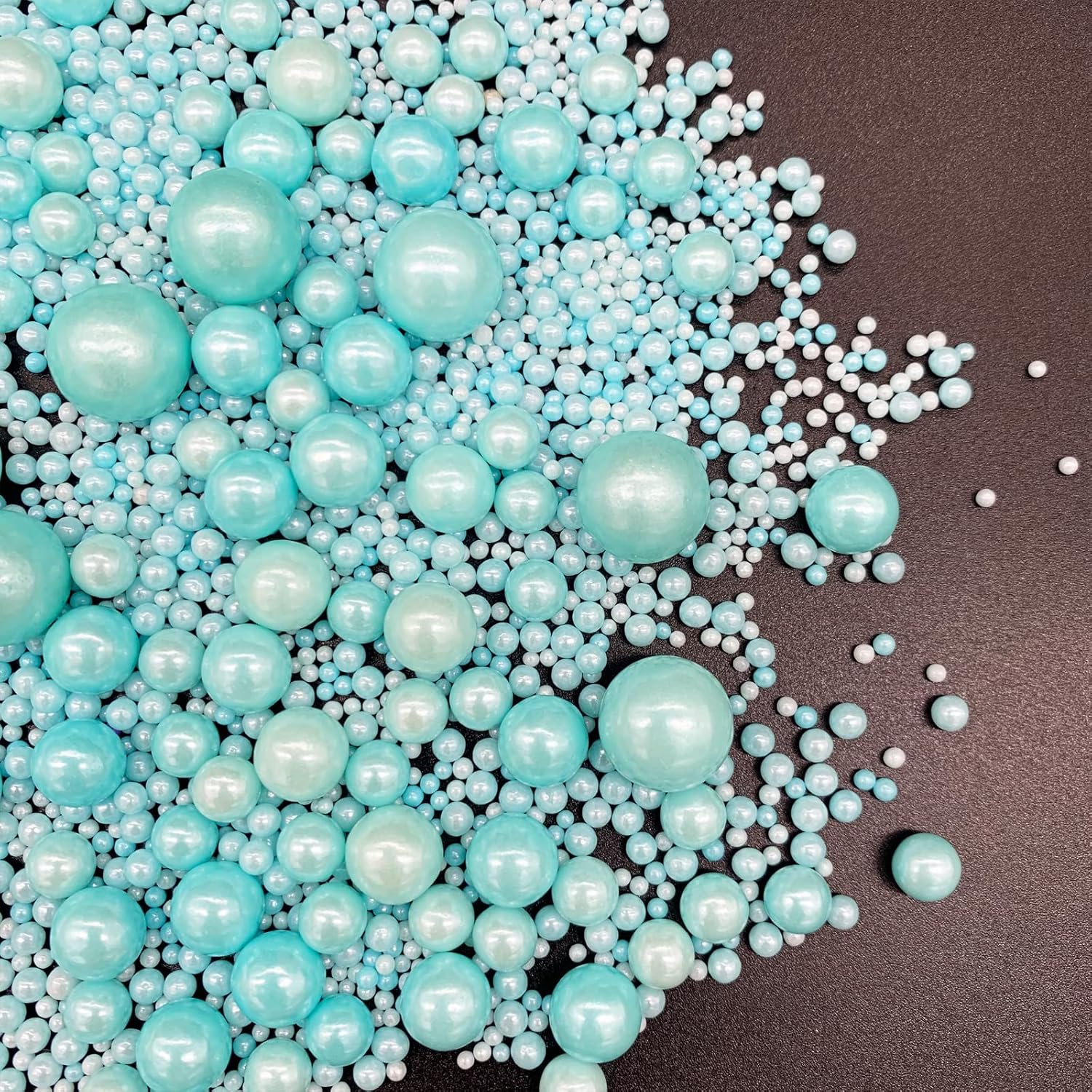 Weraru Edible Blue Pearl Sugar Sprinkles Candy Mixing Size Baking Edible Cake Decorations Cupcake Toppers Cookie Decorating Celebrations Wedding Shower Party Chirstmas Supplies 120g/ 4.2oz