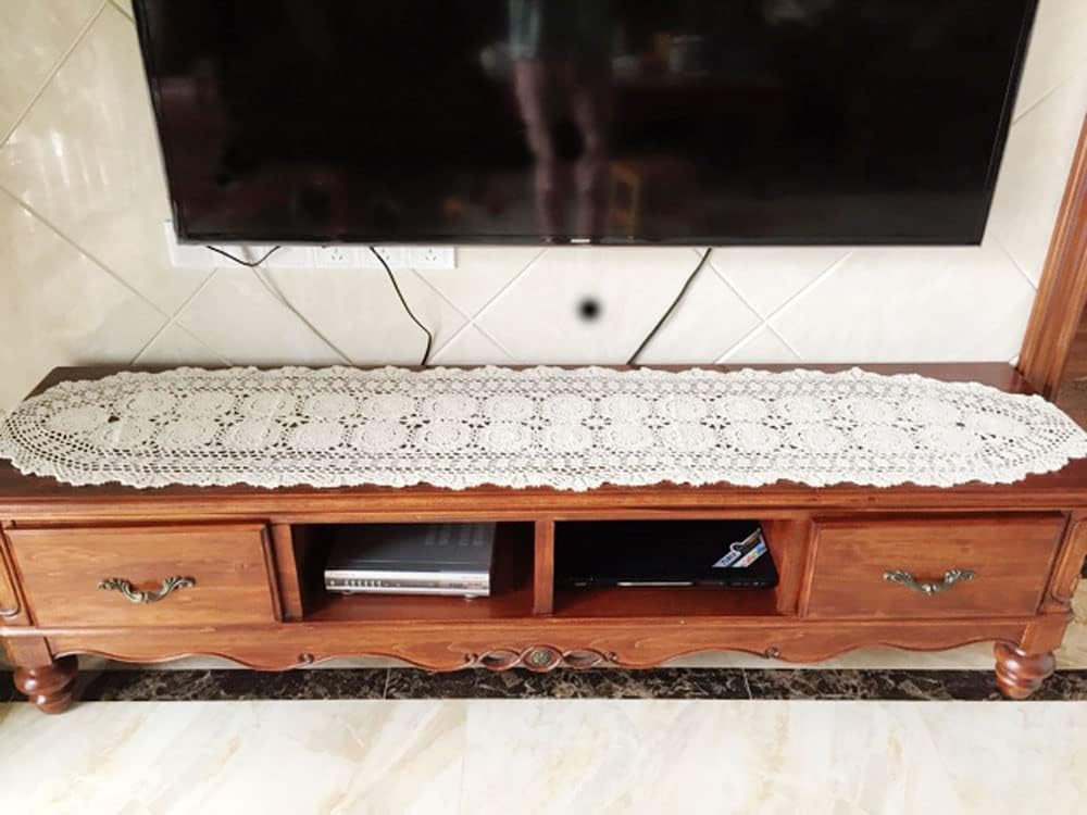 Cotton Handmade Crochet lace Table Runners Oval Tablecloth Doilies Doily Table Dresser Scarf Décor,15x35 inch,Beige