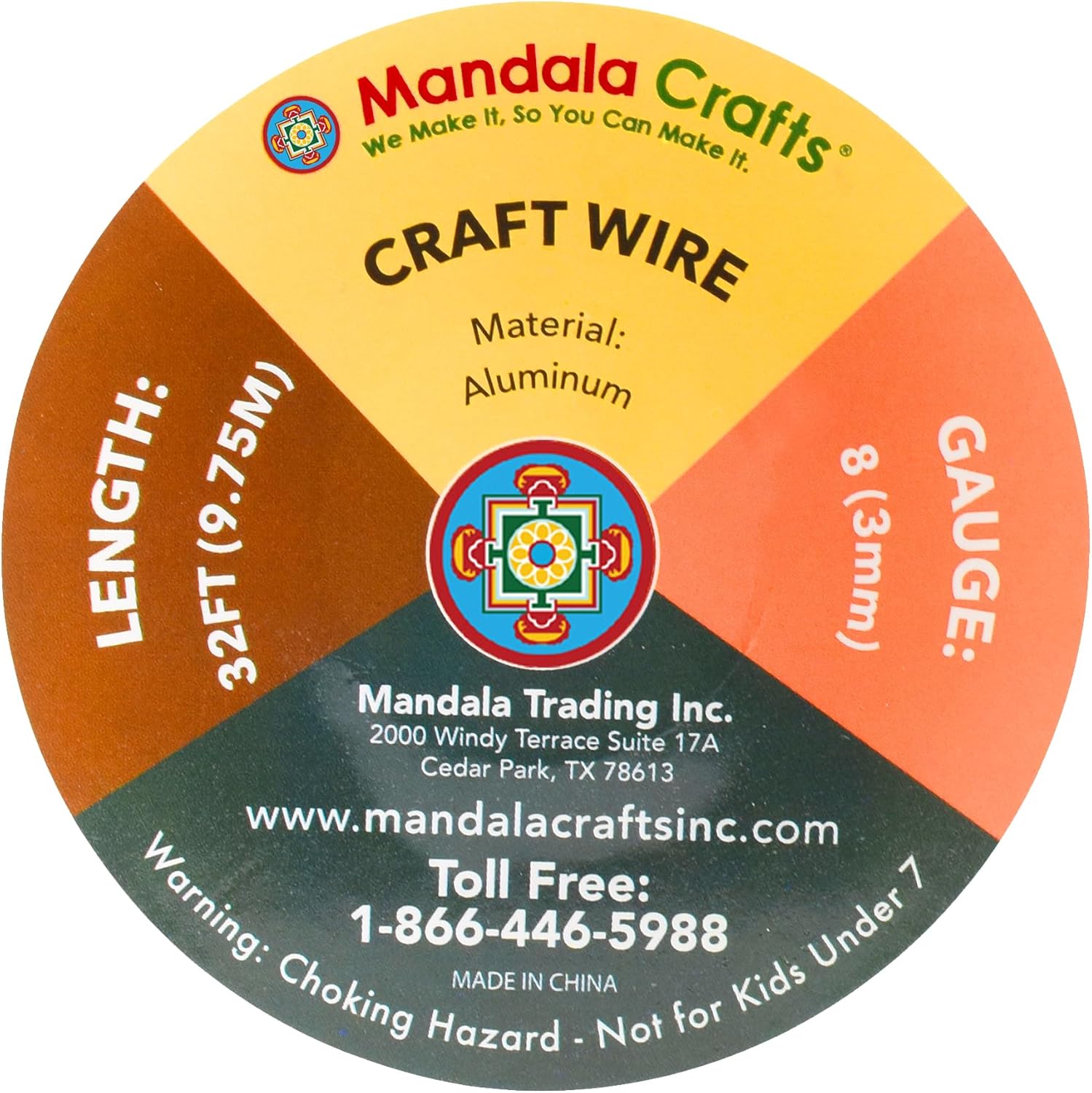 Mandala Crafts 8 Gauge Anodized Aluminum Craft Wire for Jewelry Making - 32 FT Colored Flexible Copper Wire - Bendable for Bonsai Armature Crafting Sculpting