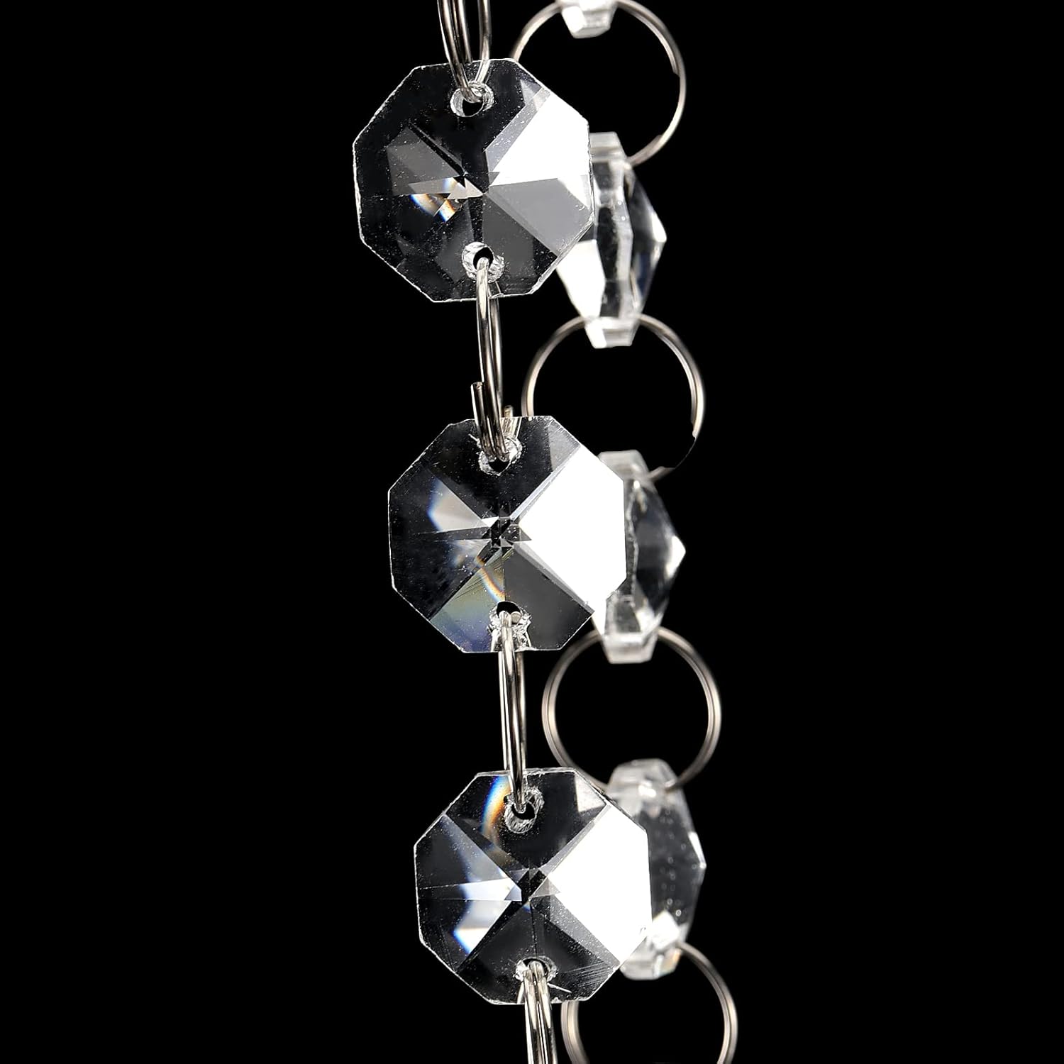 JOIKIT 52 Feet K9 Crystal Garland Strands, 14mm Crystal Chandelier String Beads Chain Clear Octagon Prism Diamond String for Decorations, Lamp, Wedding, Lobby