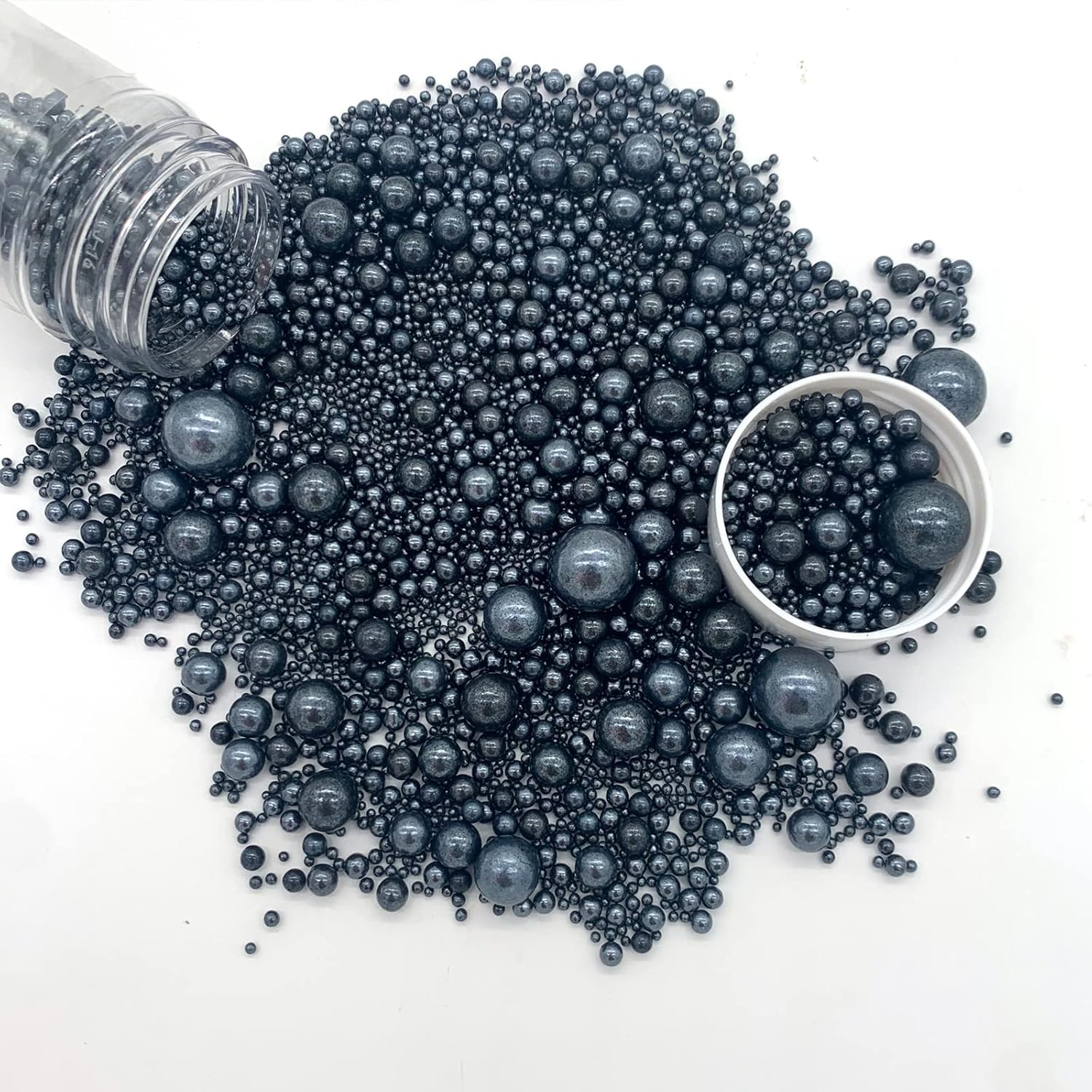 Weraru Edible Black Pearl Sugar Sprinkles Candy Mixing Size Baking Edible Cake Decorations Cupcake Toppers Cookie Decorating Celebrations Wedding Shower Party Chirstmas Supplies 130g/ 4.58oz