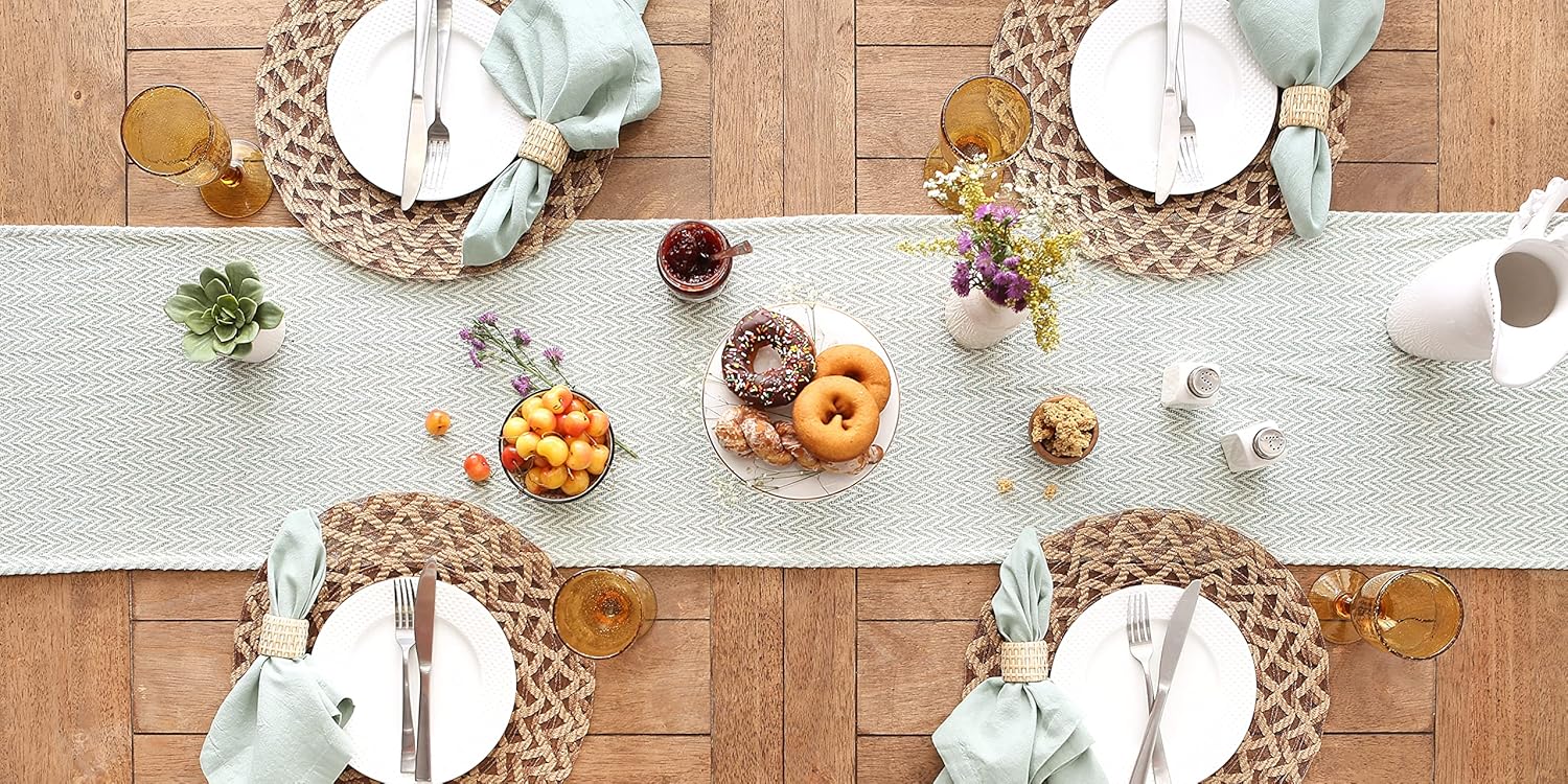 • TIMELESS DESIGN: Like a favorite knit sweater, the runner has lots of texture and full of detail, fringed edges have a casual look that works with any style of dishes