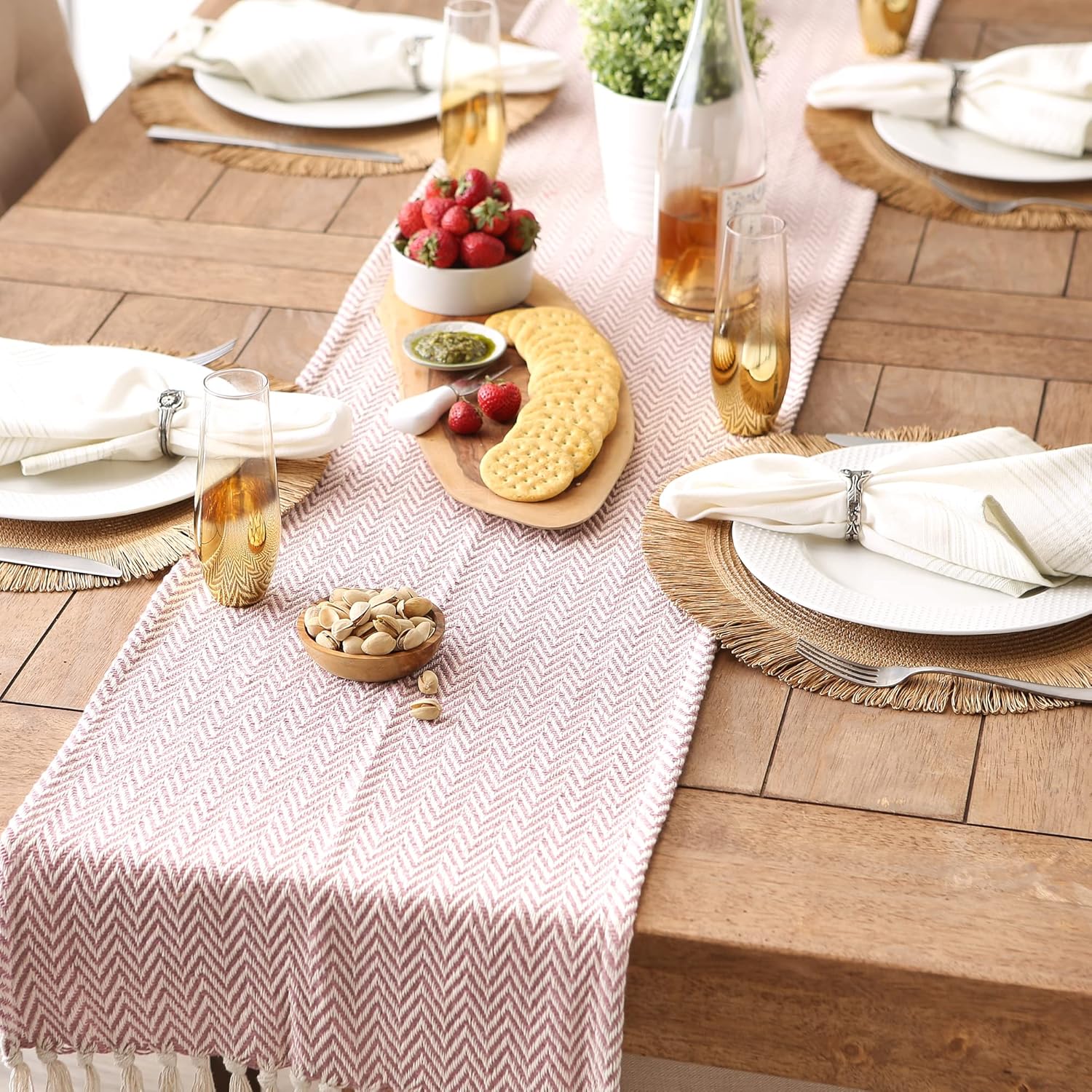• TIMELESS DESIGN: Like a favorite knit sweater, the runner has lots of texture and full of detail, fringed edges have a casual look that works with any style of dishes
