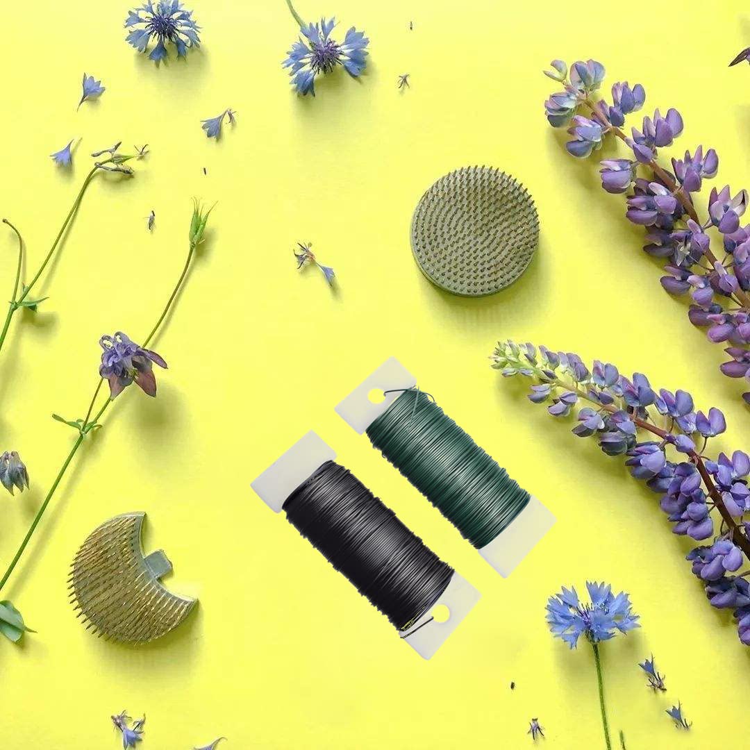 2 Rolls 76 Yards Flexible Floral Bind Wire 22 Gauge Paddle Wire for DIY Crafts Flower Arrangements Garlands, 1xBlack & 1xGreen