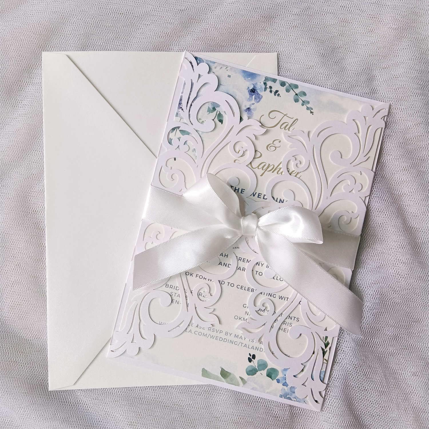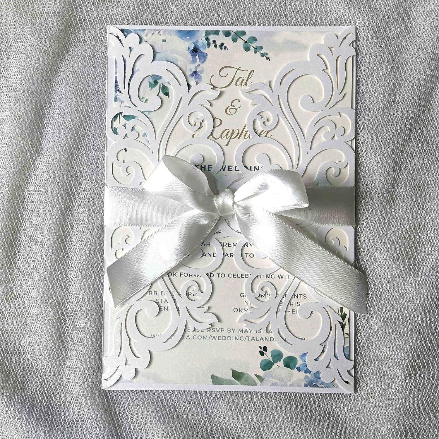 • Package including: 25 * Laser Cut Invitations Pockets + 25 * Cream Envelopes+25 * Blank Inner Sheets +25 * Ribbons