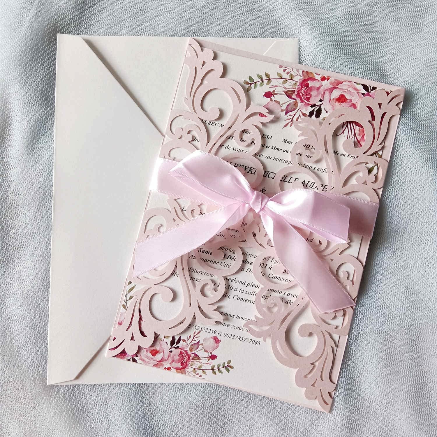 • Package including: 25 * Laser Cut Invitations Pockets + 25 * Cream Envelopes+25 * Blank Inner Sheets +25 * Ribbons