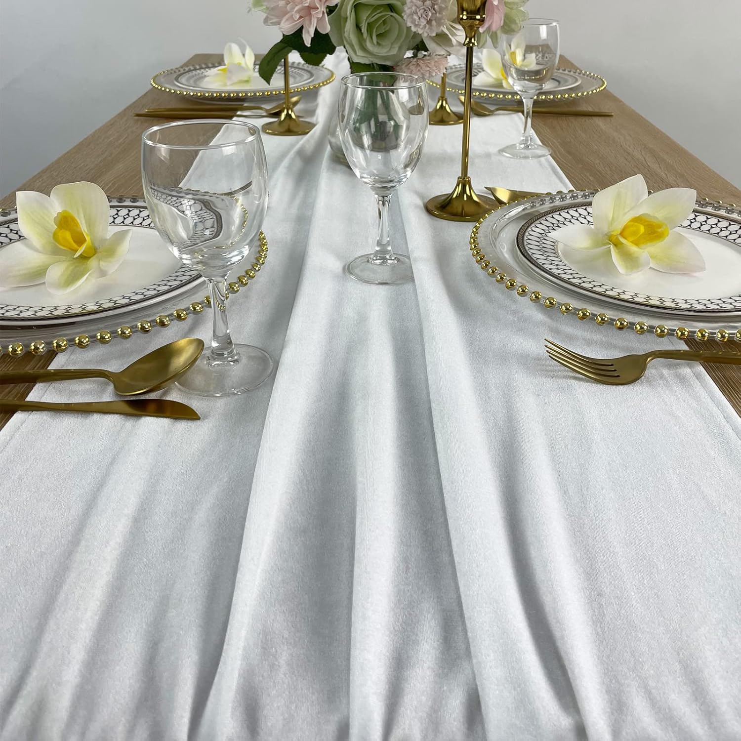 Luxurious Velvet Table Runner, 10ft Wedding Reception Decorations, 20x120inch Soft Velvet Fabric, Table Linen Overlay, Wedding Table Runners (White, 20X120inch)