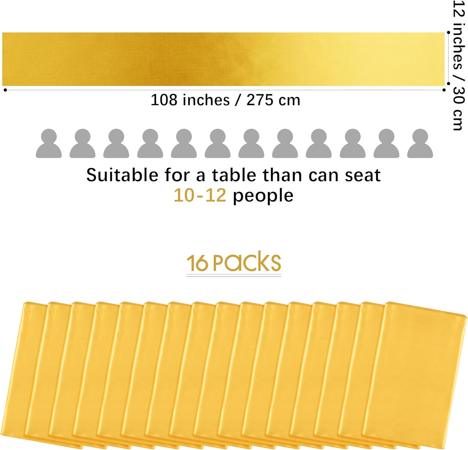 • Package content: you will receive 16 satin table runners in gold, sufficient quantity, classic color, suitable for wedding banquets and various parties, and will make your table decorations elegant and guests will love them
