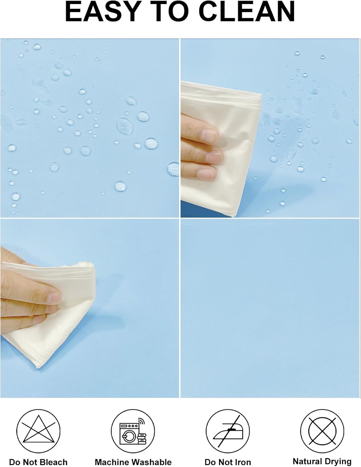 • Performance: Waterproof, wrinkle free, stain resistant. Easy to clean, not easy to deformation and shrink, machine and hand washable are available.