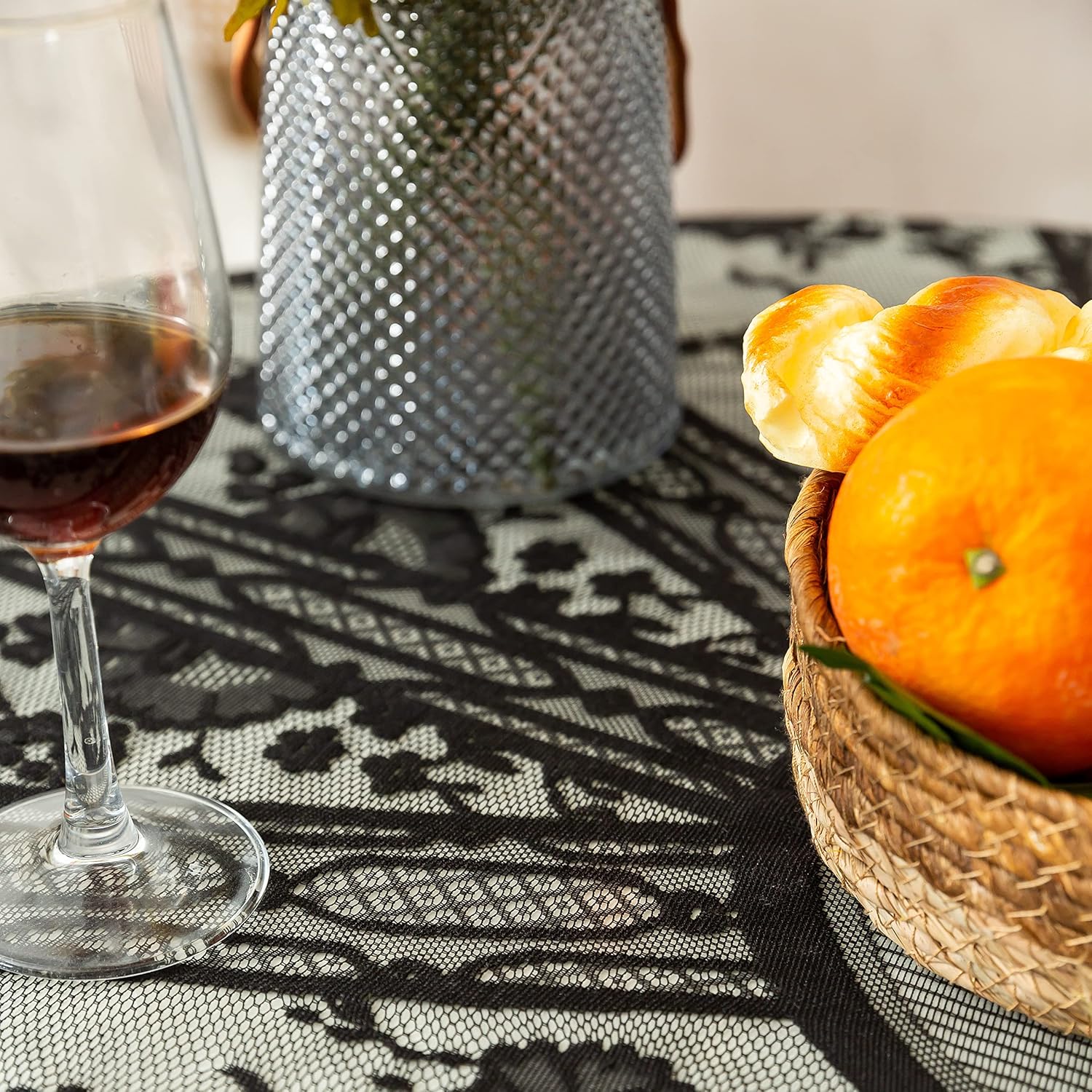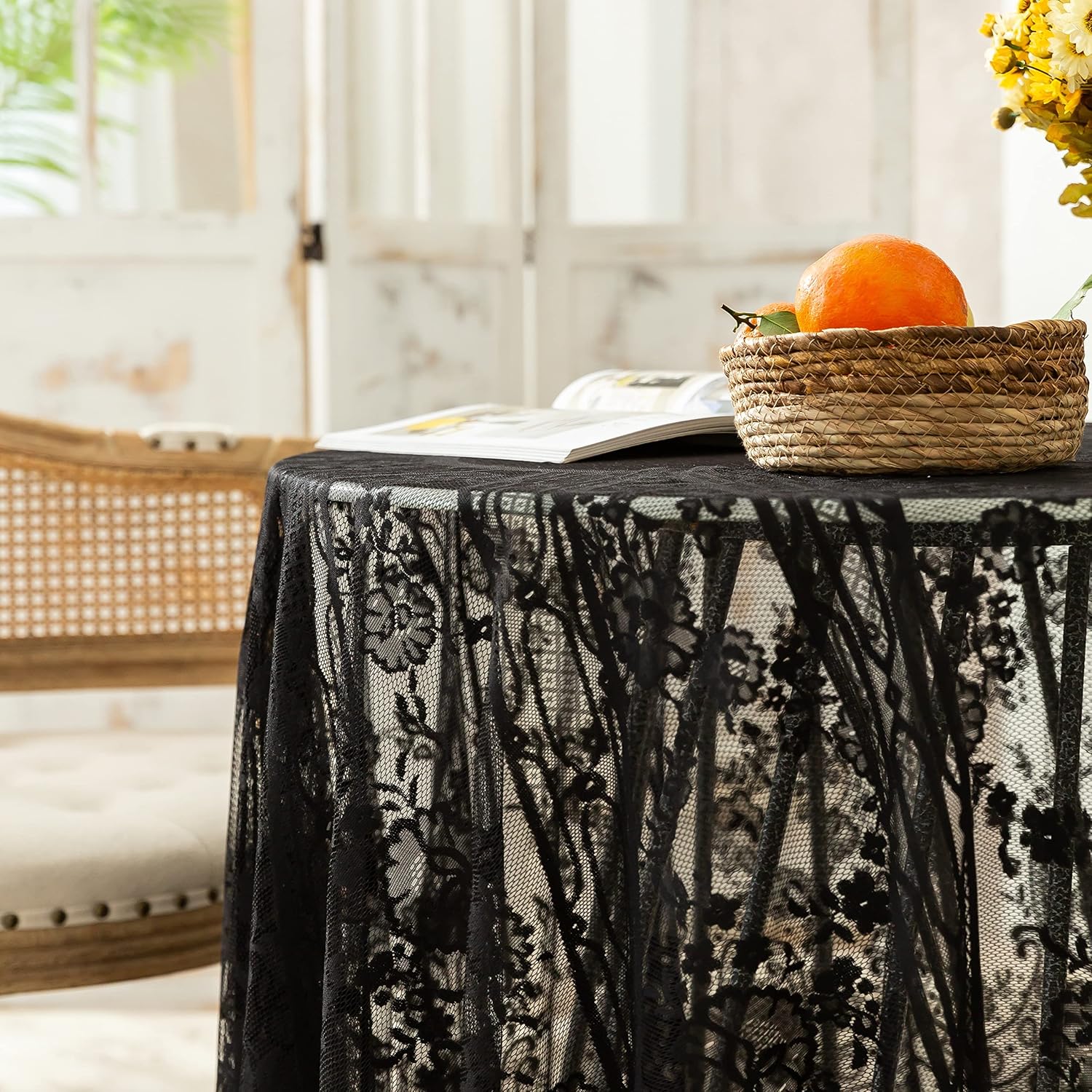 Gorgeous Round Lace Tablecloth,Vintage Floral Embroidered Table Cloths, Chic Round Table Cover for Wedding Banquet HolidayDinner Tables 60INCH (Black)