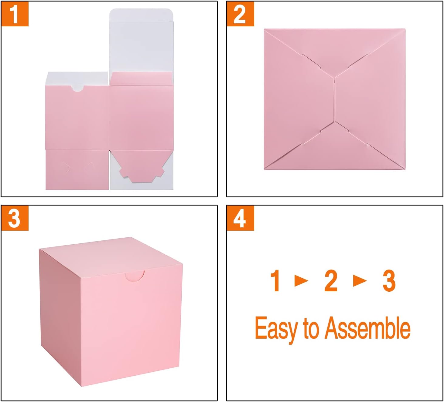 GEFTOL Small Pink Gift Box 50 Pack 4x4x4 inches Fold Box Easy Assemble Paper Gift Box Bridesmaids Proposal Box for Bridal Birthday Party Christmas