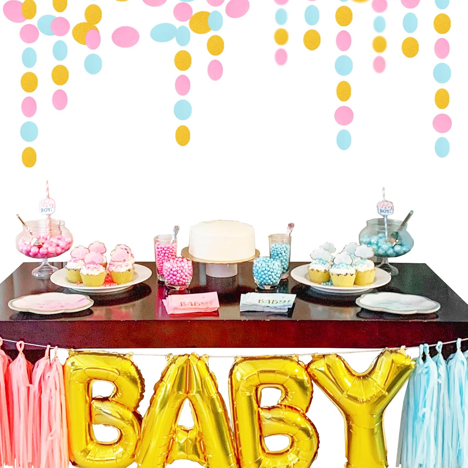 • 【Package Including】The decorations kit include 4 pack paper garland in 3 colors Blue,Gold,Pink,each garland is approx 13 feet in length,totally 52 feet in length.Each one has 40 pieces of circle dots 1.97".