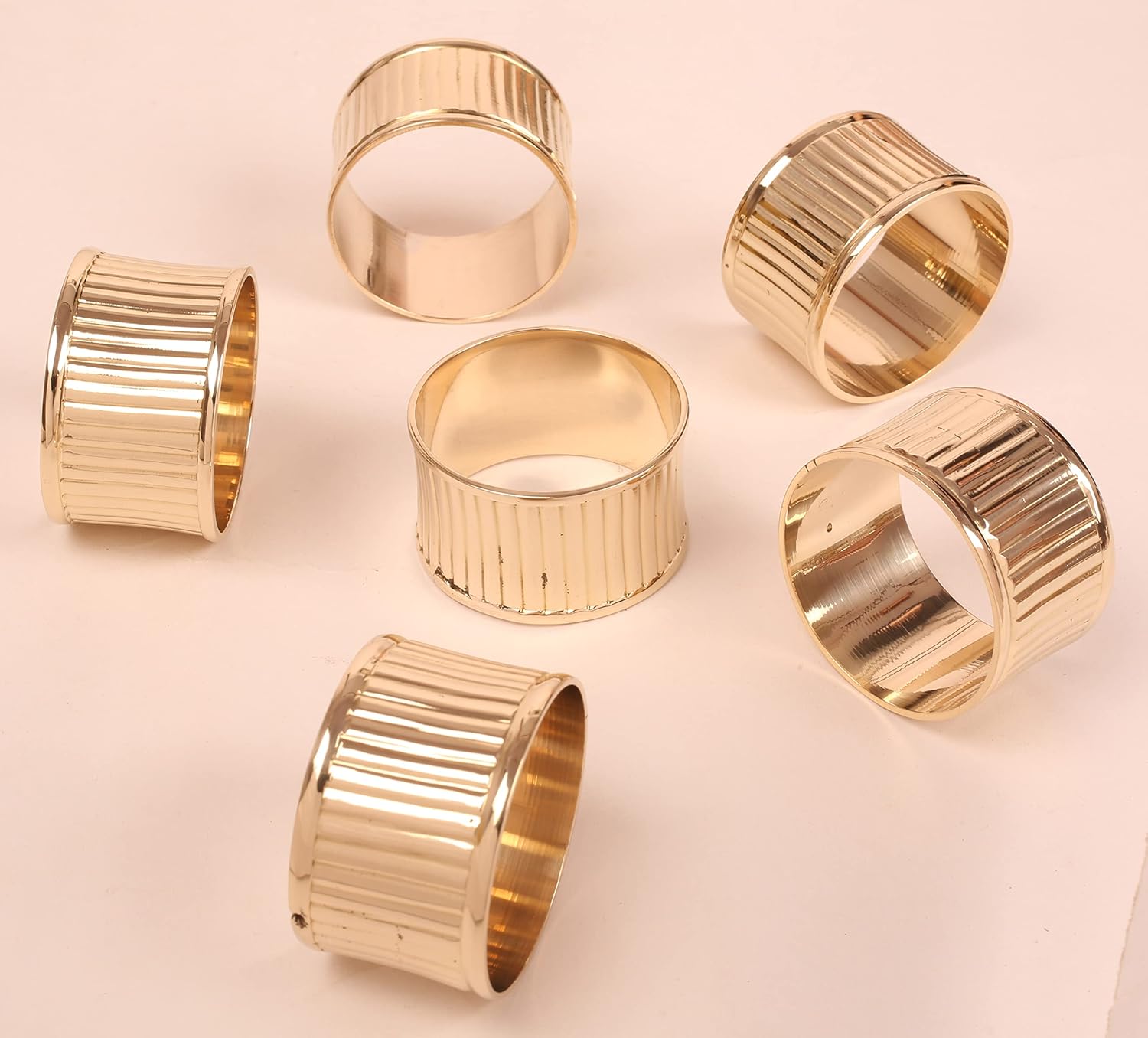 Gorgeous Beautifully Handcrafted Rolled Channels Motif Large Size Party Dining Table Napkin Holders in Gold Tone (Set of 6)