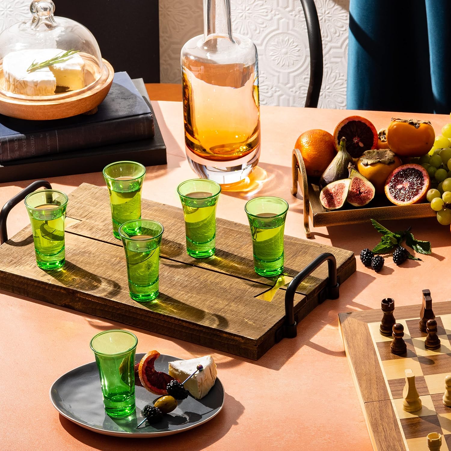 M&N HOME Green 2 Oz Shot Glasses, Set of 6, Heavy Base, Christmas Gift