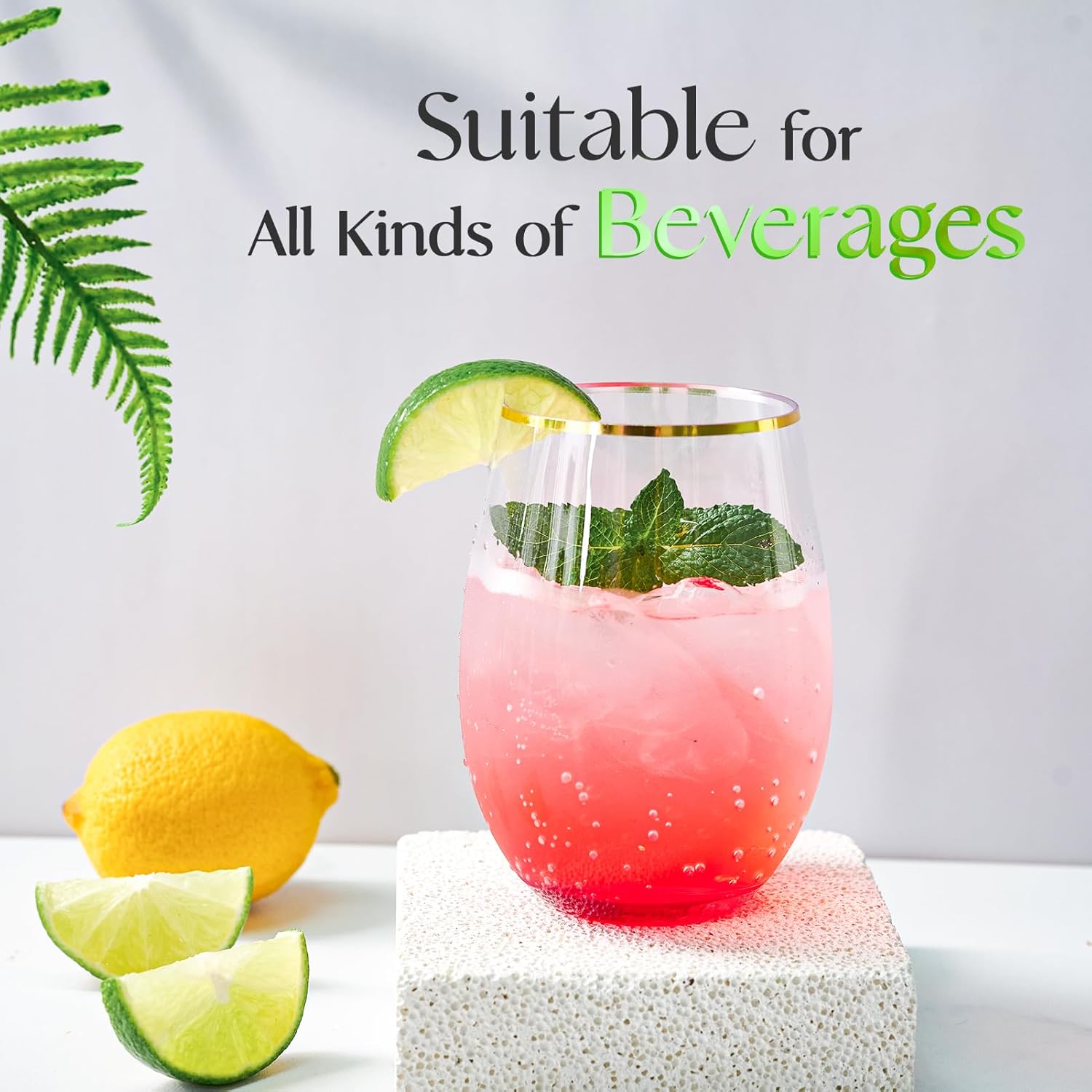 • Our gold rim stemless plastic wine glasses are heavy duty, unbreakable, shatterproof, disposable and reusable; High quality PET plastic makes the wine glass look crystal clear and adds a touch of ambiance to your party