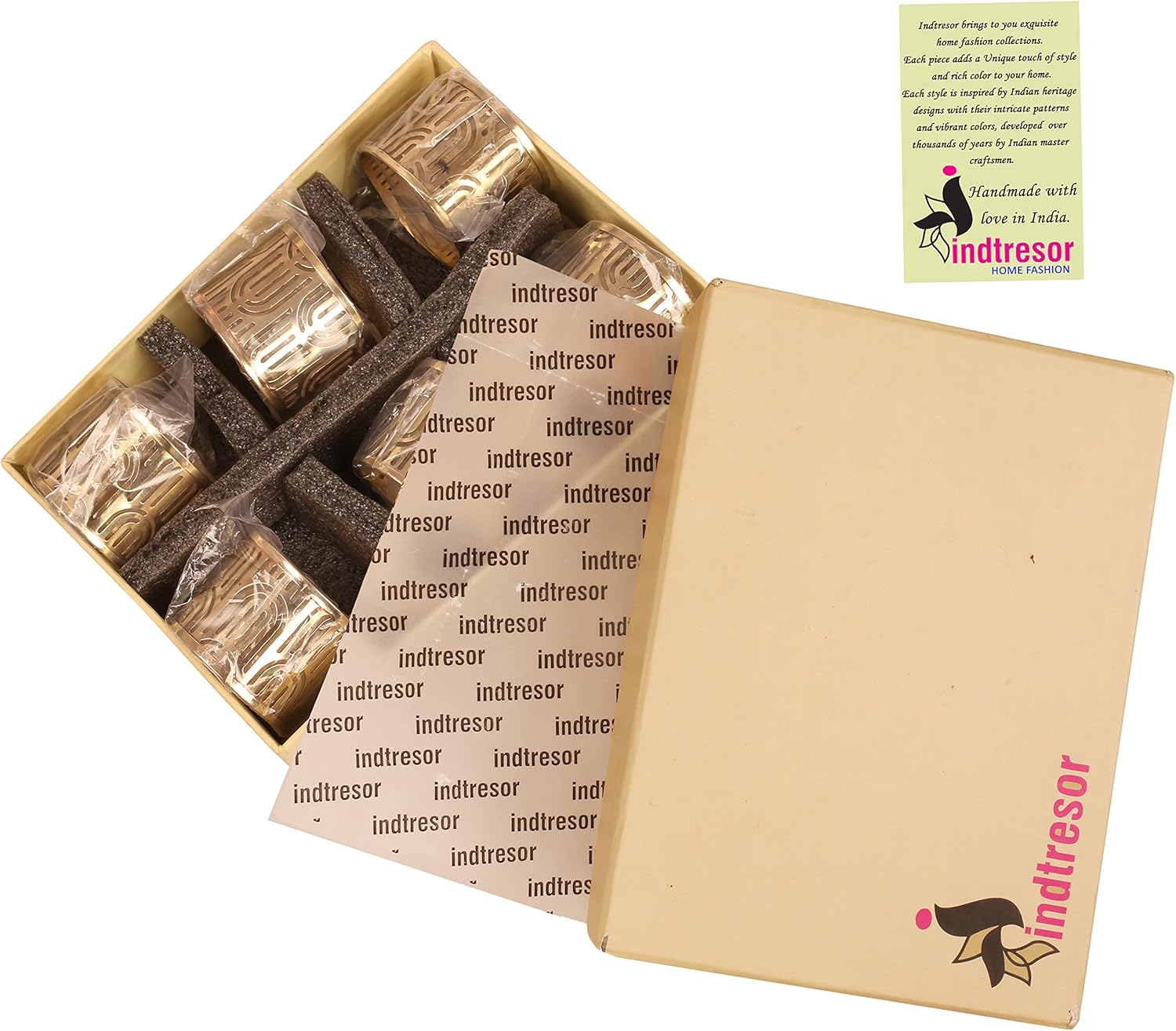 • Gold Handcrafted Large Size Napkin Holders. Set Of 6. Handcrafted In Exquisite Detail. Long Lasting Plating.