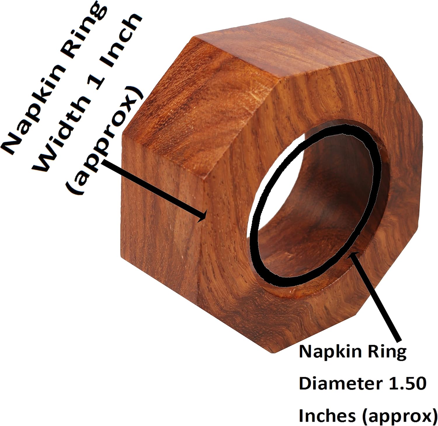 Finely Handcrafted Natural Wood Geometric Pentagon Shape Large Size Party Dining Table Napkin Holders in Natural Tone. (Set of 6).