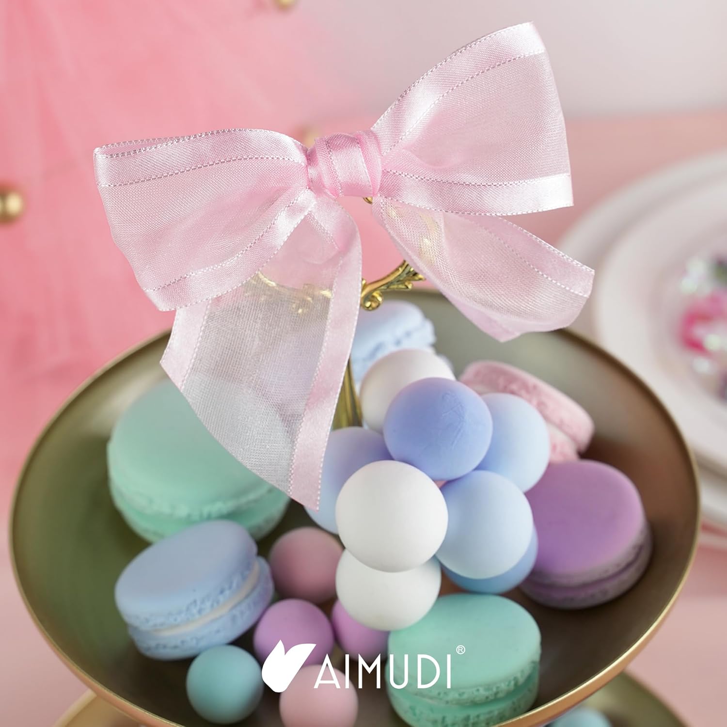 • PRETIED RIBBON BOWS- Decorative bows is made of 1-1/2'' pink organza satin edge ribbon with romantic transparency and glossy lustre, easily adding a elegant final touch to your party favor, cake pop bags, gift basket