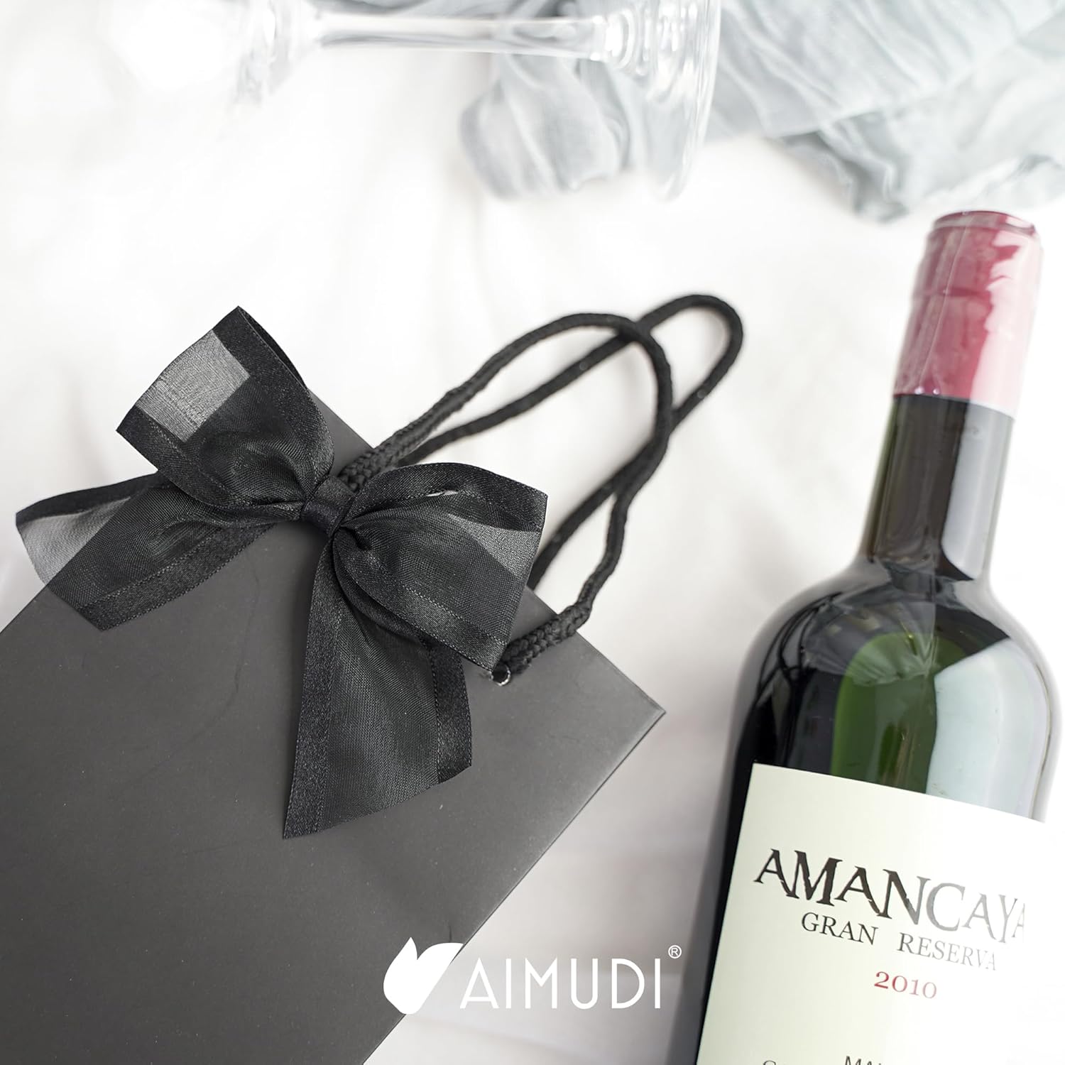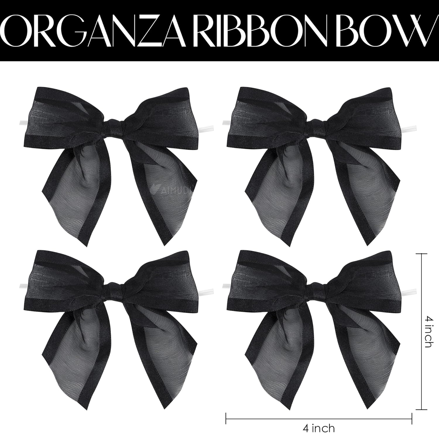 AIMUDI Black Bows for Crafts 4" Organza Bows Premade Twist Ties Bows for Gift Wrapping Treat Bags Baskets Cake Pop Baby Shower Birthday Wedding Decor - 12 Counts