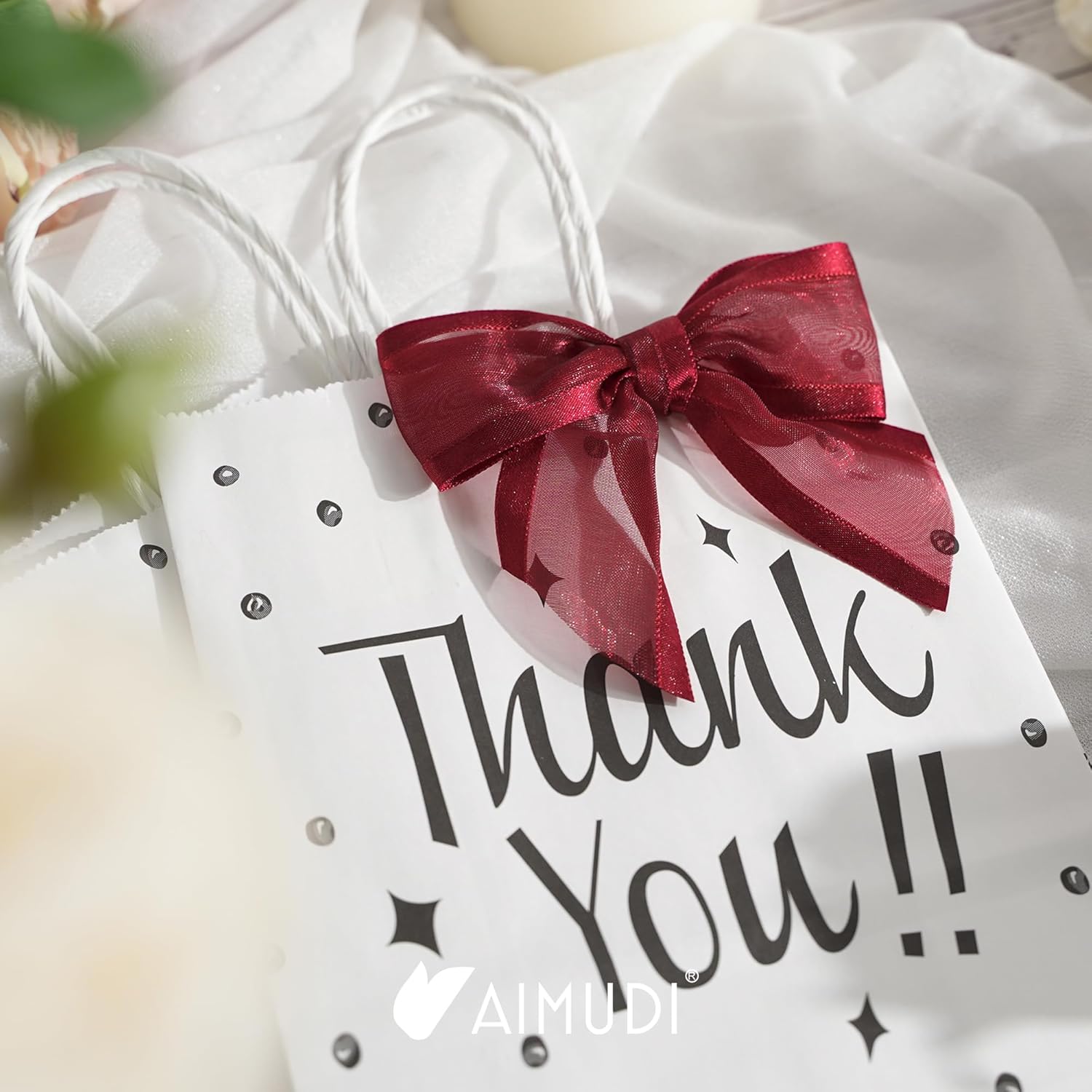 • PRETIED RIBBON BOWS- Decorative bows is made of 1-1/2'' burgundy organza satin edge ribbon with romantic transparency and glossy lustre, easily adding a elegant final touch to your party favor, cake pop bags, gift basket