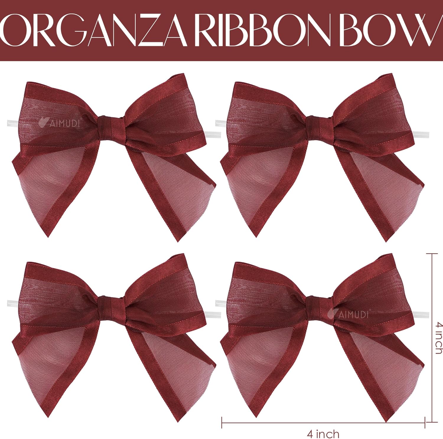 AIMUDI Burgundy Bows for Crafts 4" Organza Bows Premade Twist Ties Bows for Gift Wrapping Crafts Treat Bags Baskets Cake Pop Baby Shower Birthday Wedding Decor - 12 Counts
