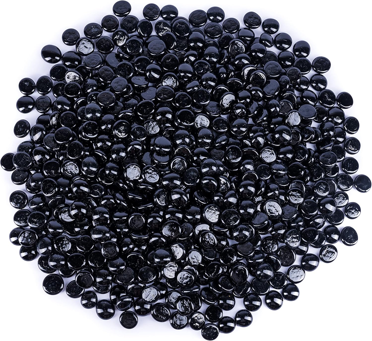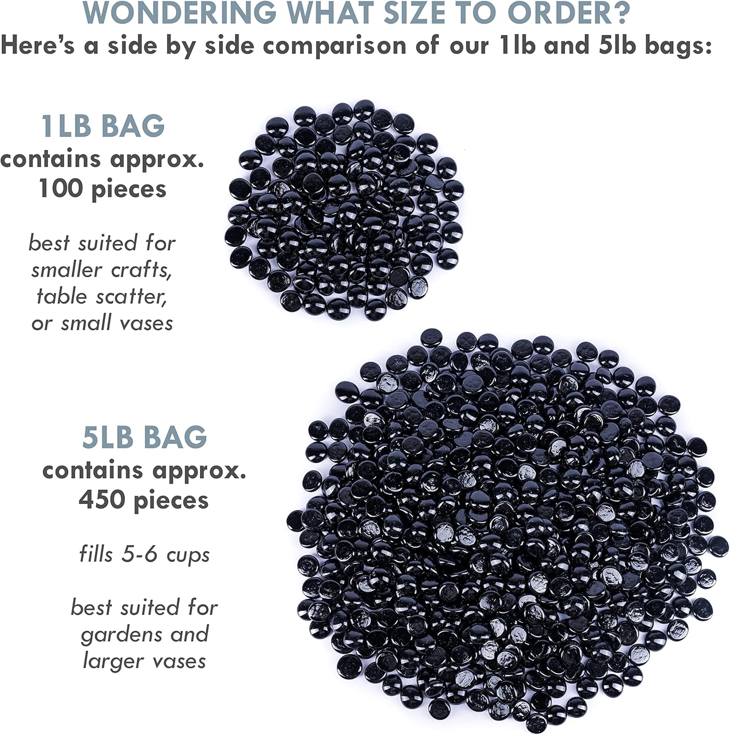 Galashield Flat Glass Marbles for Vases Black Glass Gems Beads Pebbles Vase Filler (5 LBS, Approx. 540 PCS)