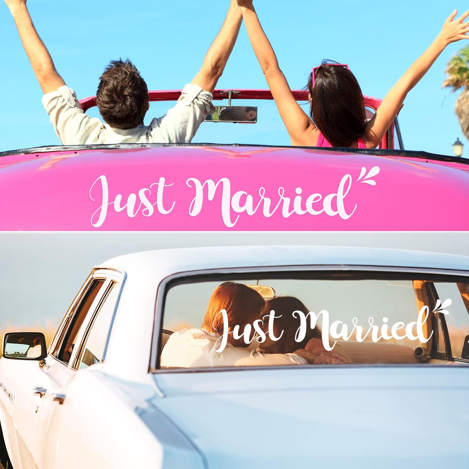 • Multiple Functions: our just married car decorations sets are full of wishes for newlyweds, not only can be applied for car decoration, but also can be applied as decorations for bridal party, bridal appearance party, honeymoon trip, giving you a romantic wedding