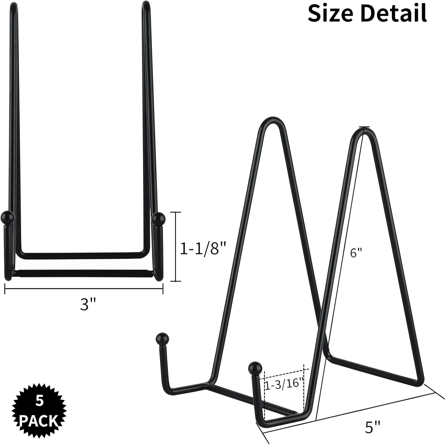 IBosins 5 Pack 6 Inch Plate Holder Display Stands, Metal Black Frame Stand for Picture, Book, Photo Easel, Creation, Collectibles