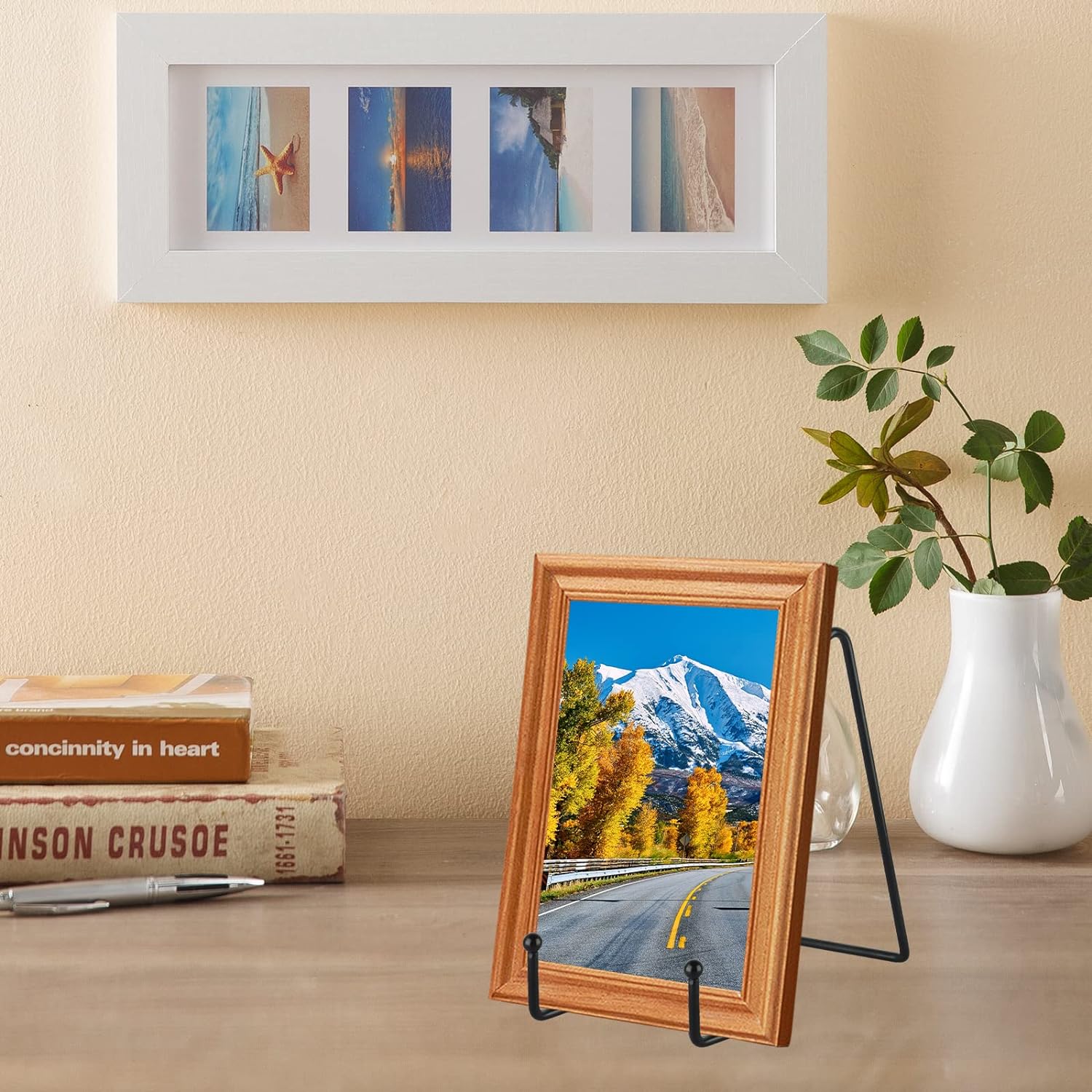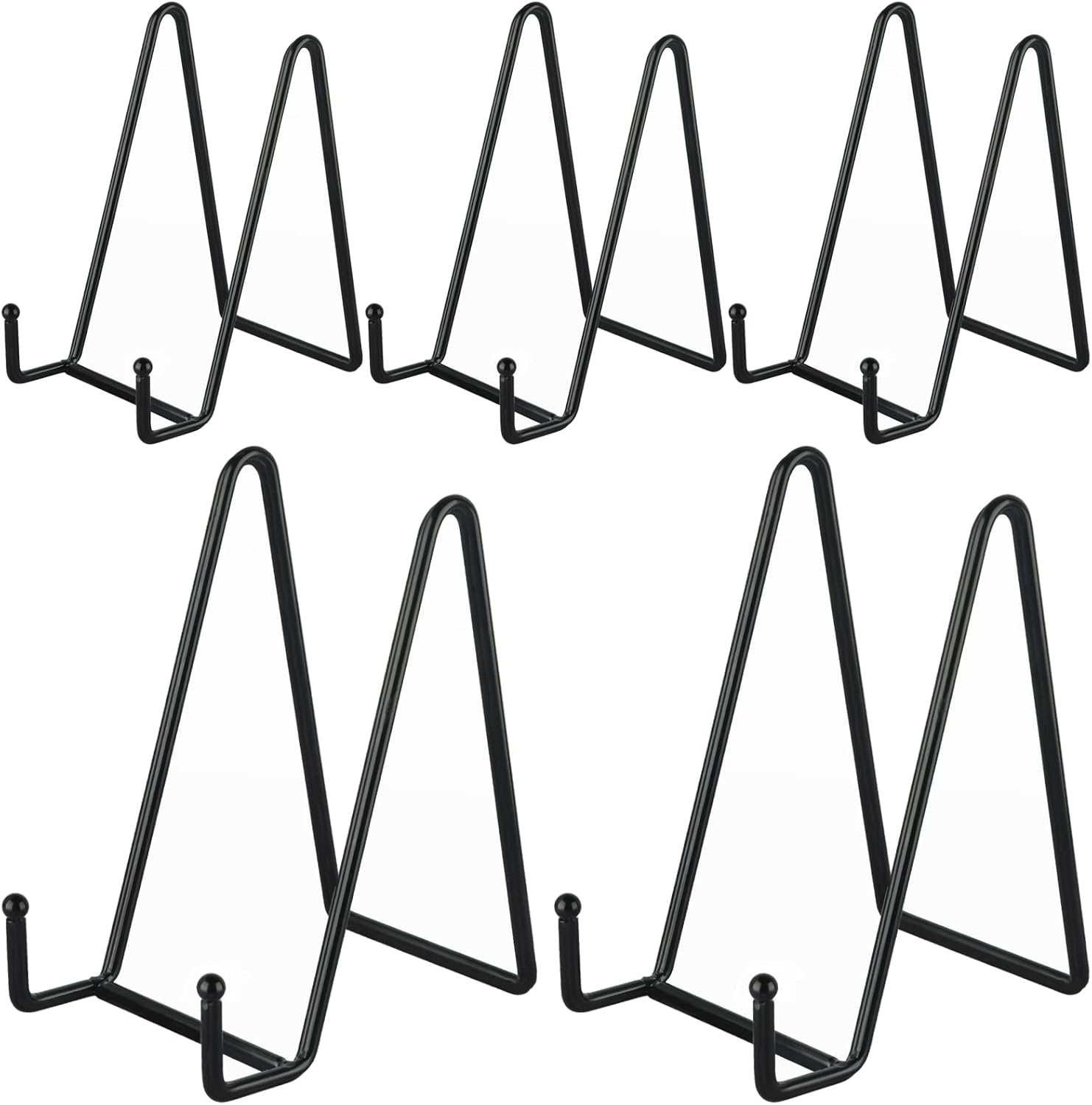 • 5 Pack Stands: The 5 pack plate holder set allows you to meet different needs with one purchase, and it is more cost-effective. You can use the display stand to place your photos, artwork, open books, mobile phones, tablets…and so on