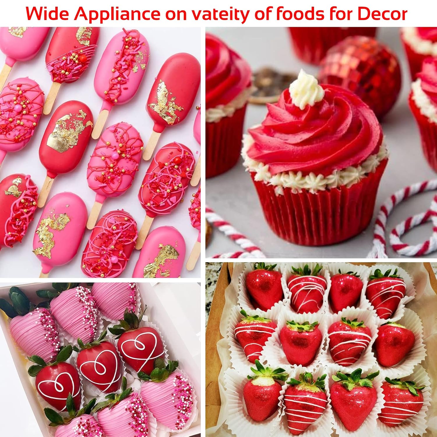 • 【Easy to Use】Whether you are a professional cake artist or a DIY baker, Jelife edible red luster dust powder for strawberries is easy to use. Beginner-friendly and edible gold dust also can be brushed or used spray gun for smoothing when mixed with vodka, grain alcohol, or oil-based flavorings