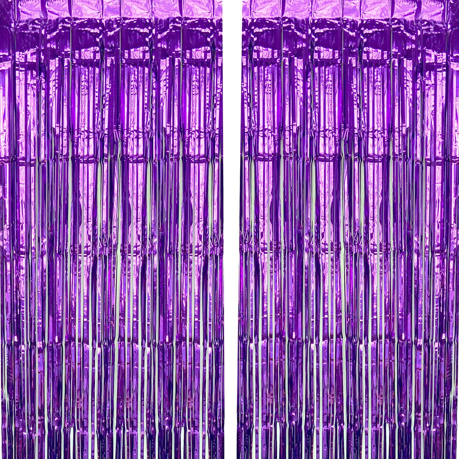 CHRORINE 2 Pcs 1 x 2.5m Purple Metallic Tinsel Foil Fringe Curtain, Backdrop Party Streamers Door Streamers Background for Wedding Bridal Shower Bachelorette Birthday Party Decorations
