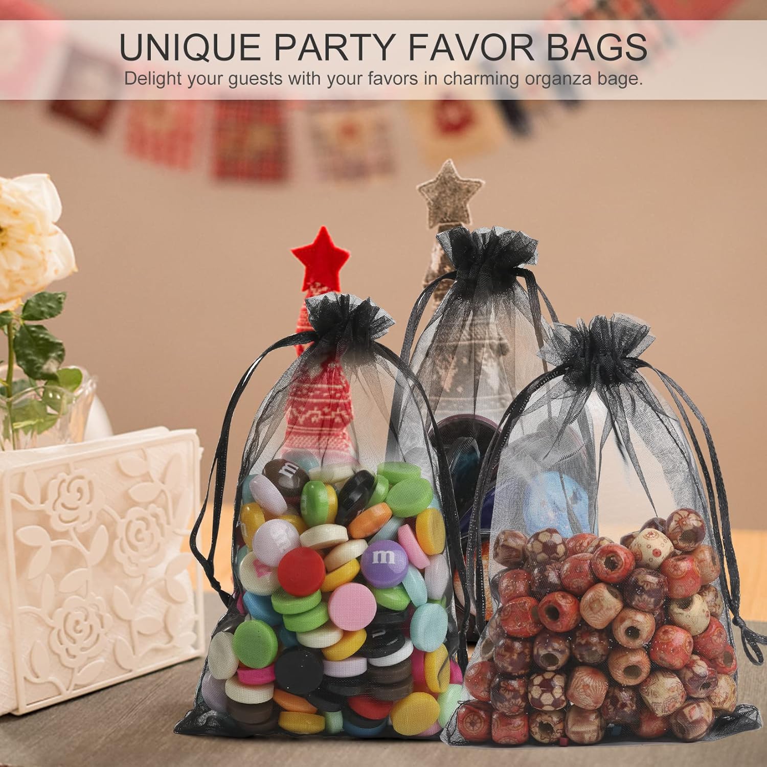 • 🎩【Advantages】 - Compared to other products on the market, our organza bags have been upgraded, touch softly and smoothly, looks more upscale and expensive. More simple and big enough to fill with treats, solve your trouble of pack little stuffs while traveling.