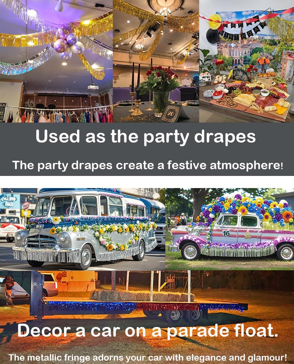 • Come with 4 pack foil fringe garland. Each 12 inch drop x 10 feet long (Total 40ft long) and can easily be cut into any size.