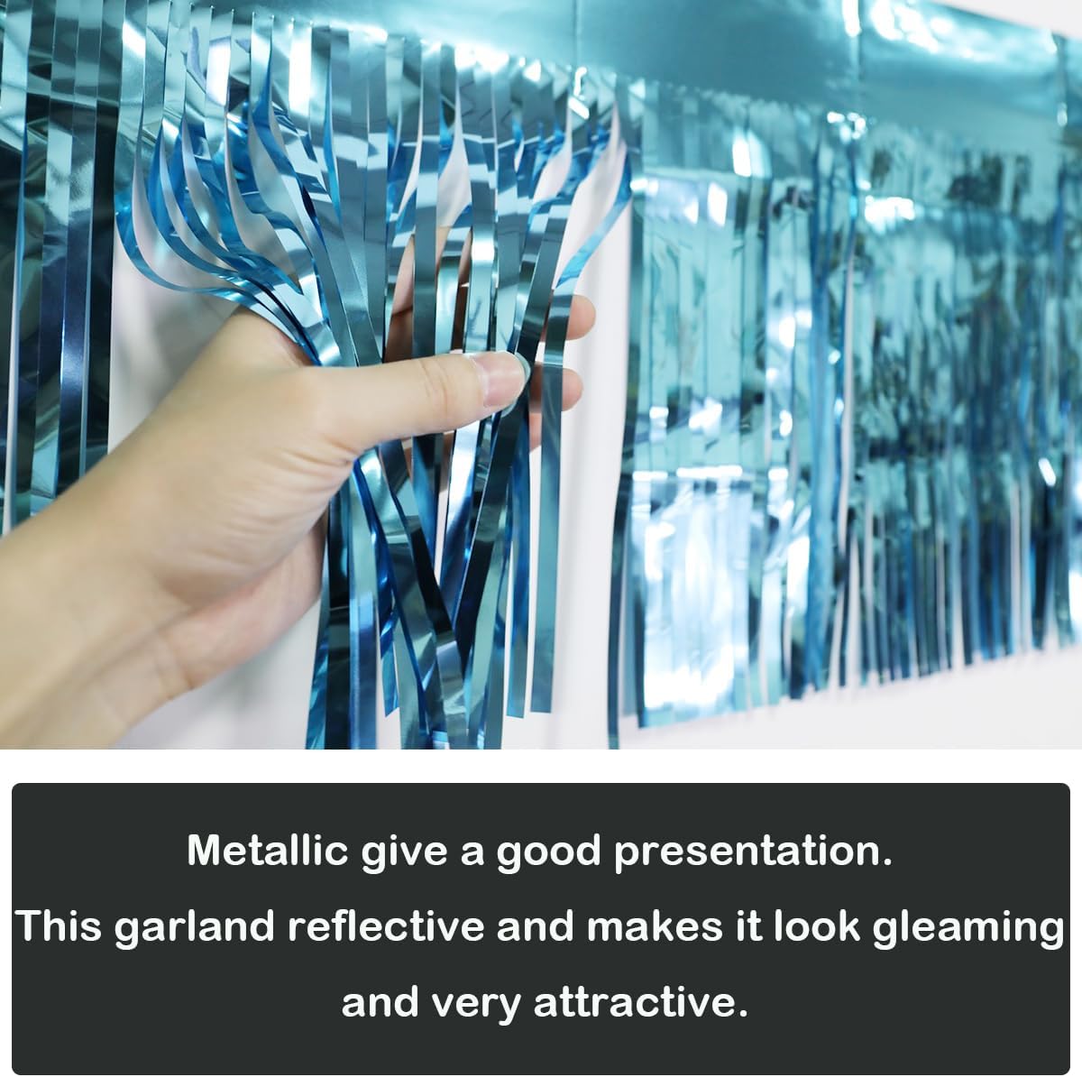 4 Pack Total 40 Feet Foil Fringe Garland Light Blue Metallic Wall Hanging Drapes Tassel Skirting Teal Tinsel Streamers for Parade Float Trailer Mardi Gras Party Birthday Wedding (Turquoise)